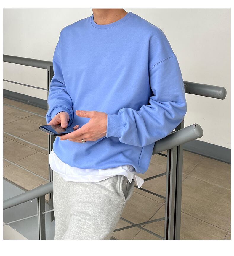 2022年春のプルオーバーセーターメンズタイドブランドルーズバージョントレンドオールマッチ無地長袖トップスカジュアルジャケット ロング スプリング 春物 ソリッドカラー BLUU72354563183