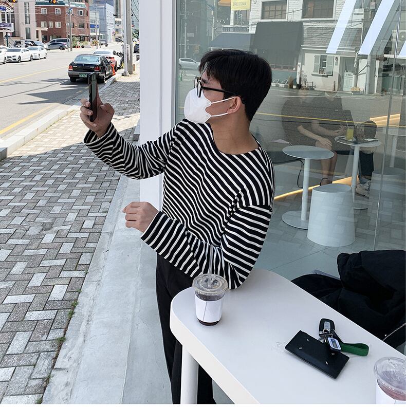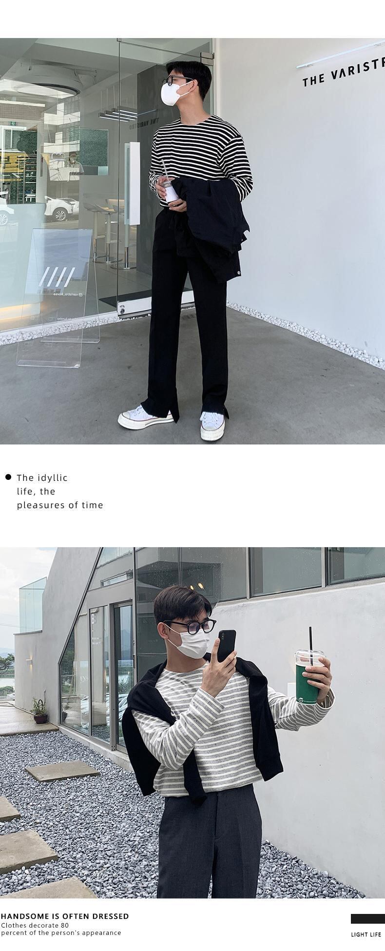 2022年春新作長袖TシャツメンズタイドブランドバージョントレンドルーズストライプボトミングシャツカジュアルTシャツ服 ロング スプリング 春物 BLUU62125683807