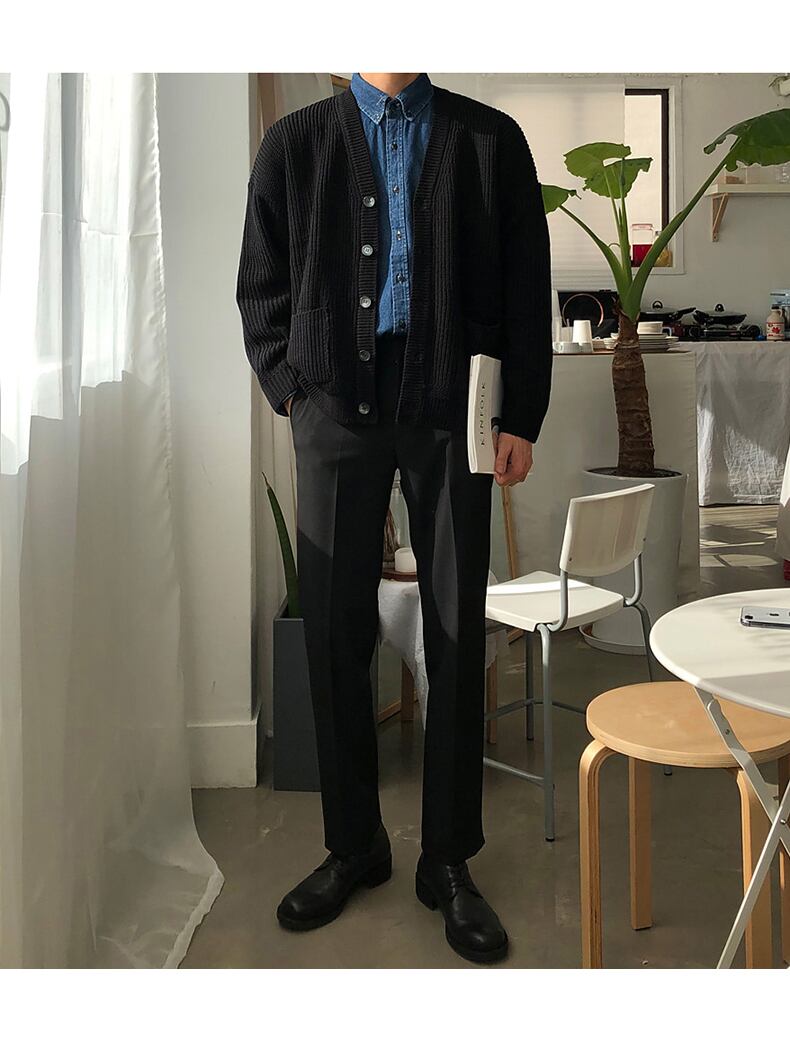 秋のVネックセーターメンズルーズカジュアル怠惰風バージョントレンドハンサム香港スタイル無地ニットカーディガンジャケット オータム 秋物 ソリッドカラー BLUU3042918130