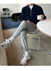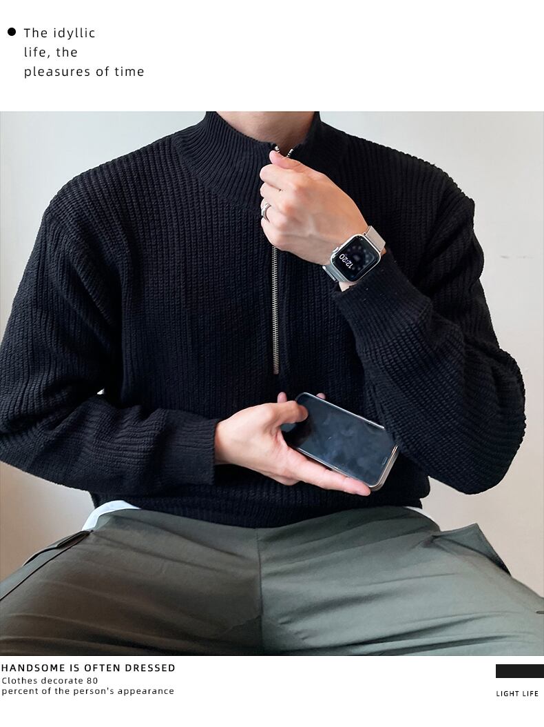 バージョントレンドジッパーラペルセーターメンズルーズで怠惰な香港スタイルの無地ニットセータートップカジュアルジャケット ソリッドカラー BLUU81374330932