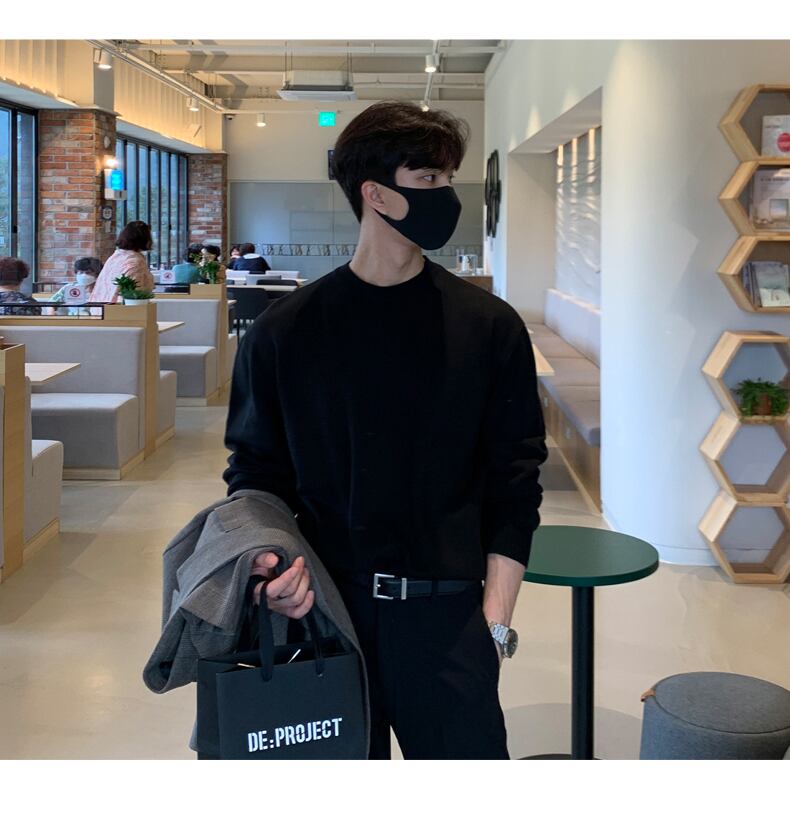 秋冬のラウンドネックセーターメンズルーズバージョンのトレンド香港スタイルレトロベースの無地ニットセータートップオールマッチ オータム 秋物 ウィンター 冬物 Oネック ソリッドカラー BLUU88451722187