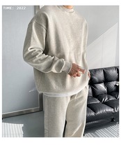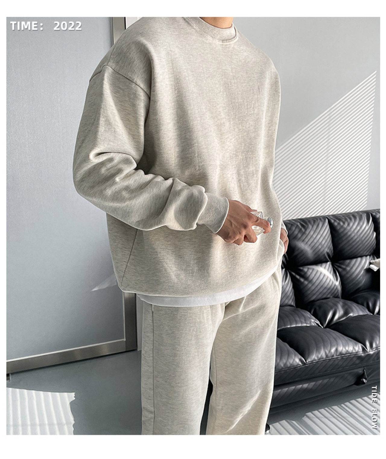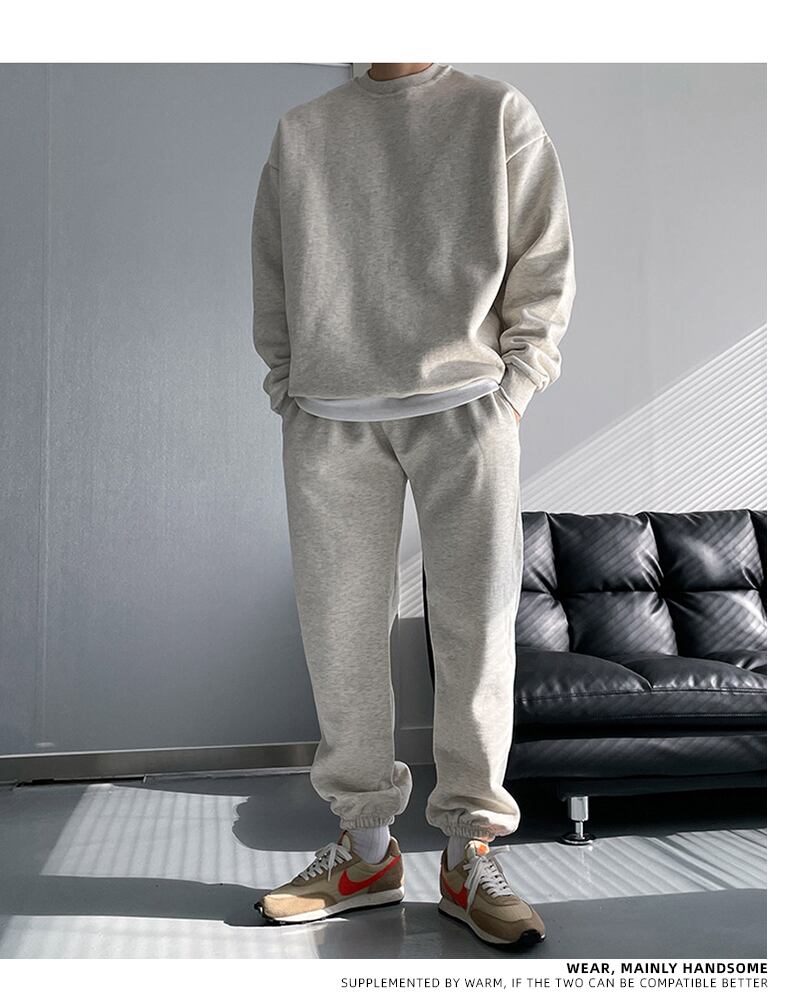 トレンディなハンサムなラウンドネックトップルーズストレートカジュアルオールマッチレギンスパンツのセータースポーツスーツメンズバージョン Oネック BLUU82321851580
