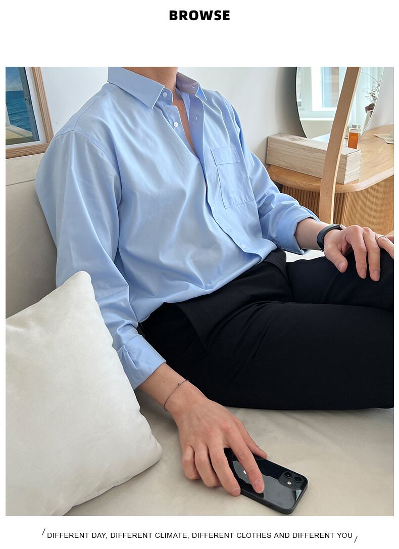 春の白メンズ長袖シャツ香港スタイルのスモールジャケットトレンドのトレンドデザインセンスのカジュアルシャツバージョン ロング ホワイト スプリング 春物 BLUU44672891652