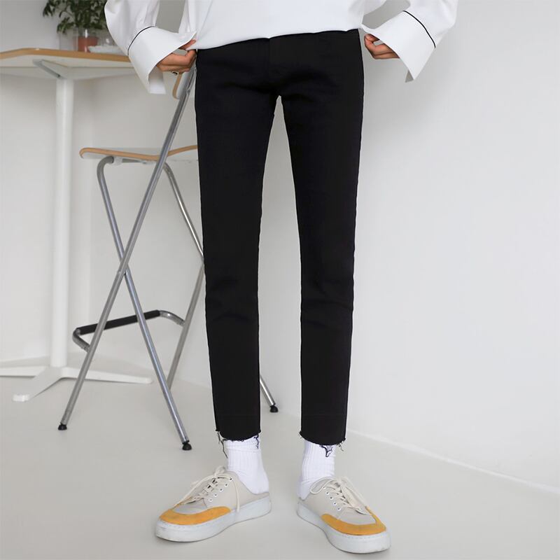 ジーンズメンズサマー薄片ブラックスリムスモールフィートバージョントレンドオールマッチルフィアンハンサムカジュアル9点パンツ学生 夏物 BLUU71059353185