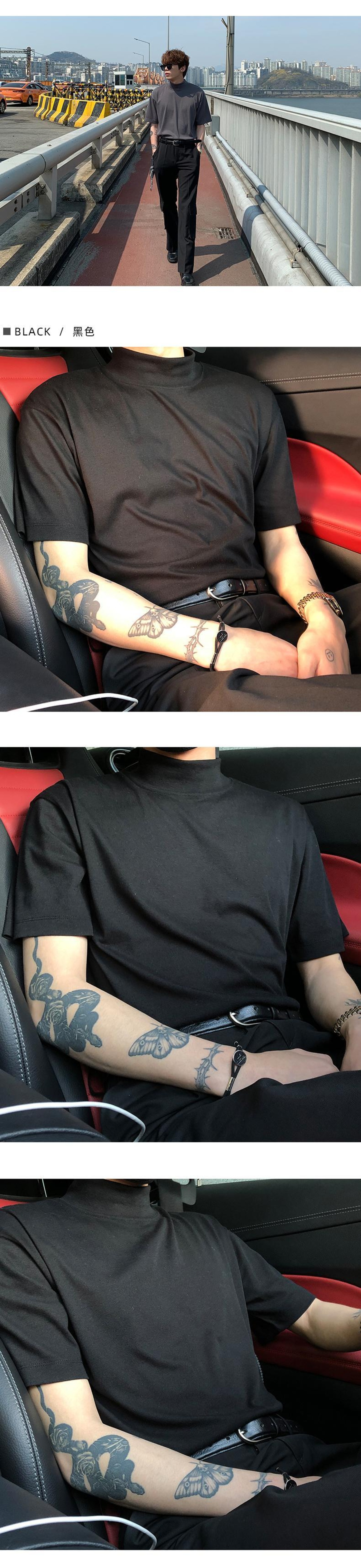 夏の新作ハーフハイネック半袖Tシャツメンズコットントレンドルーズ無地ハーフスリーブTシャツバージョンeseオールマッチ サマー 夏物 ソリッドカラー BLUU74804380873