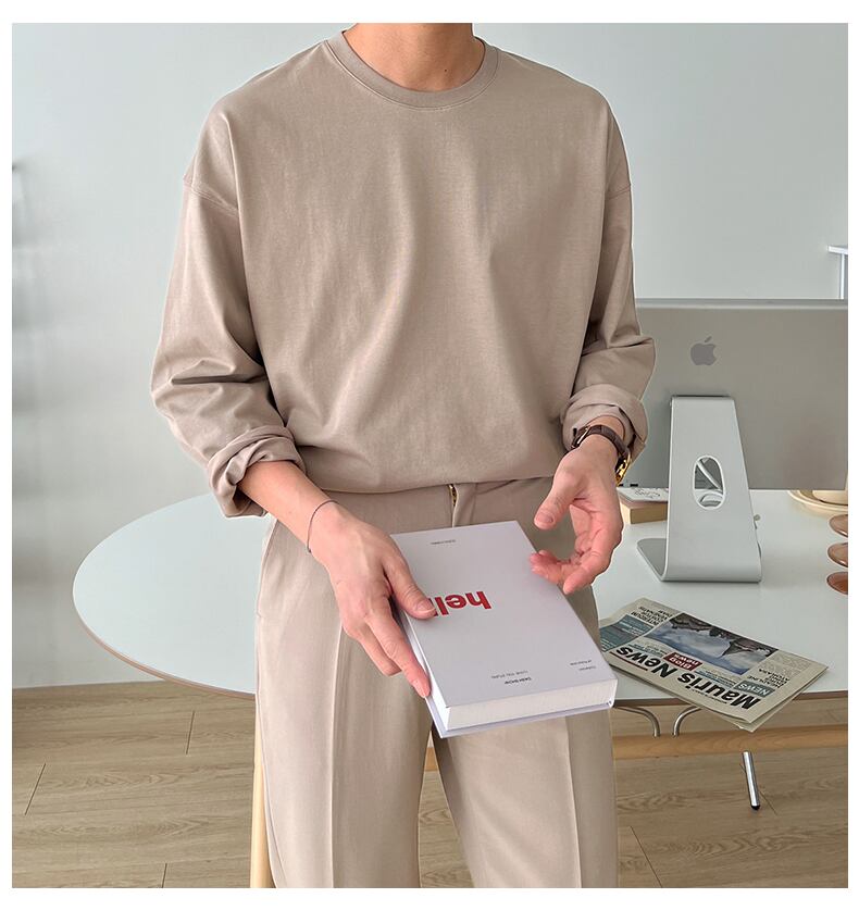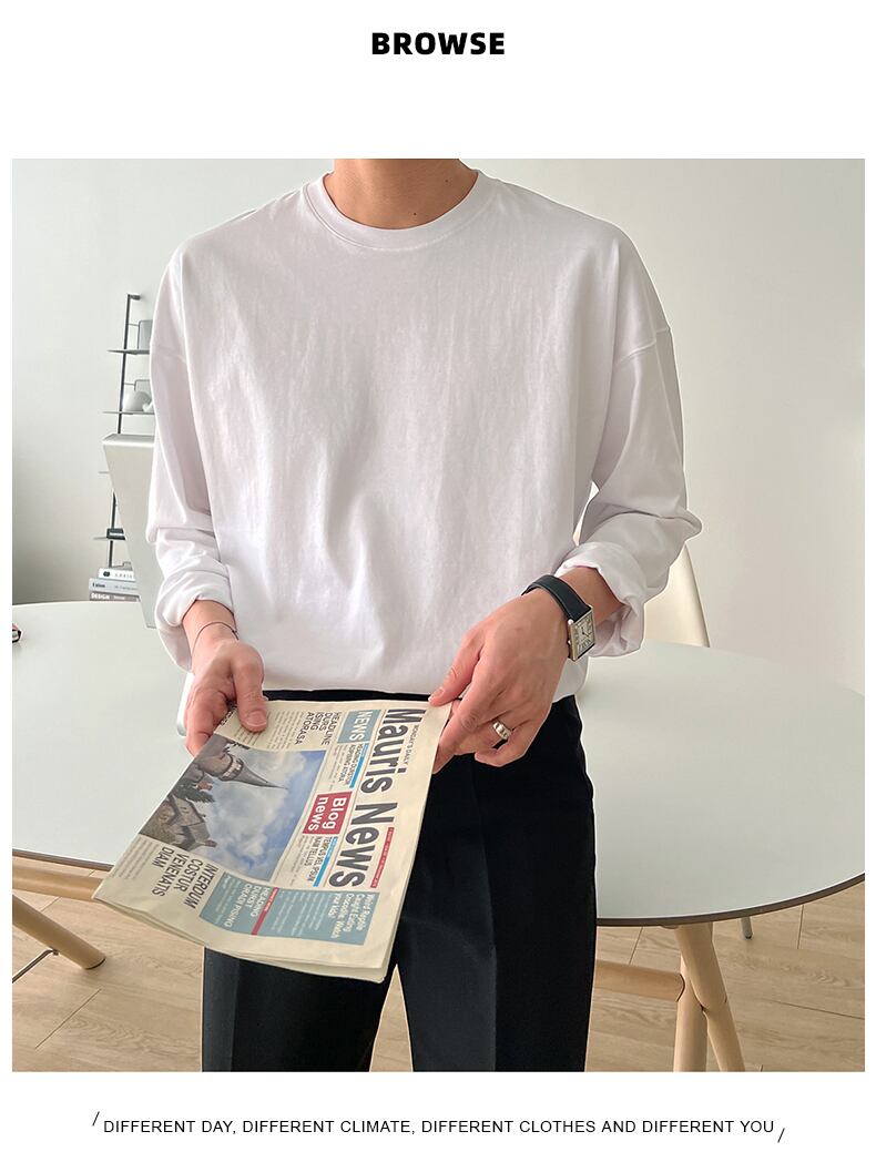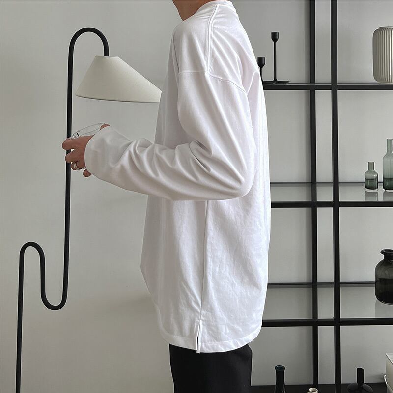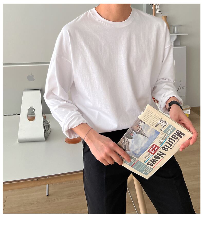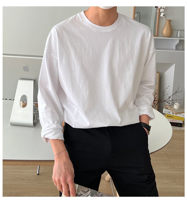 2022年版長袖Tシャツメンズタイドブランドトレンドトップ香港スタイルオールマッチ無地純綿インナーボトミングシャツTシャツ ロング コットン ピュア ソリッドカラー BLUU63680139057