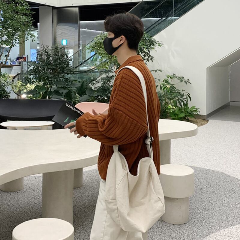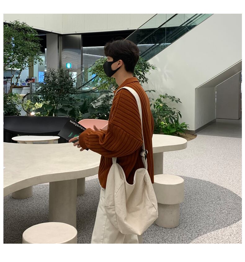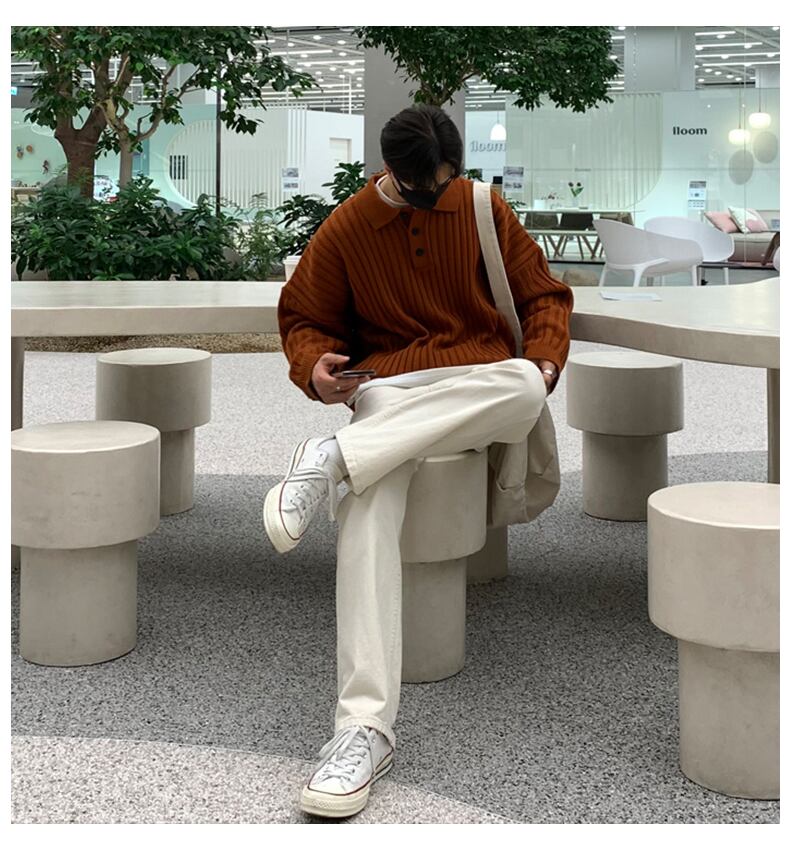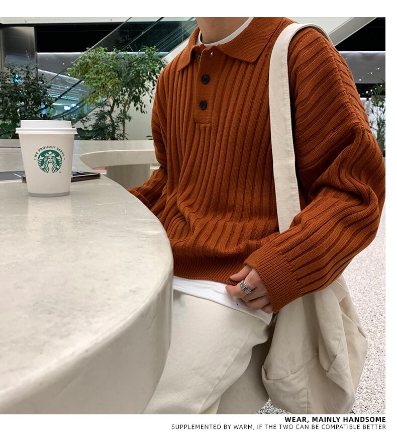 2022年香港スタイルのポロラペルセーターメンズタイドブランドバージョントレンドルーズオールマッチ無地ニットセータートップコート ソリッドカラー BLUU23081159625