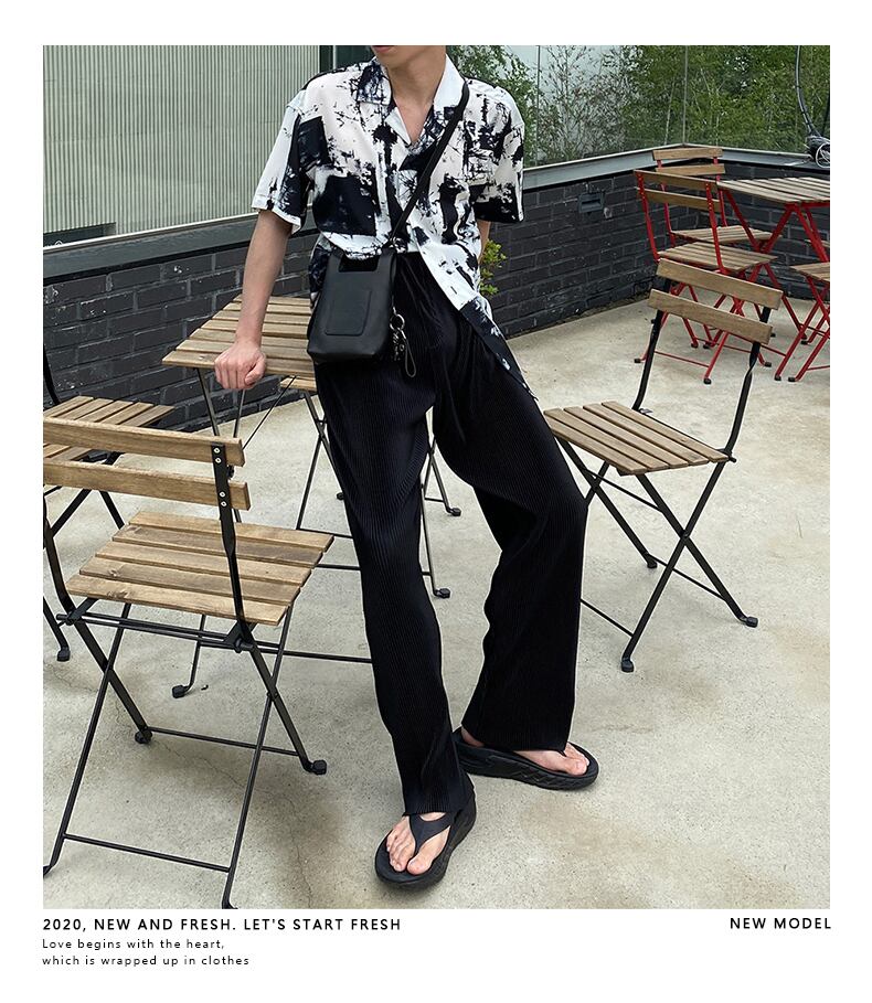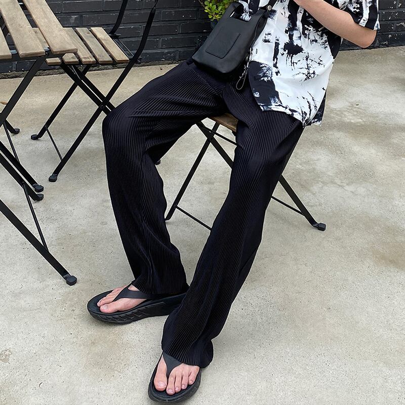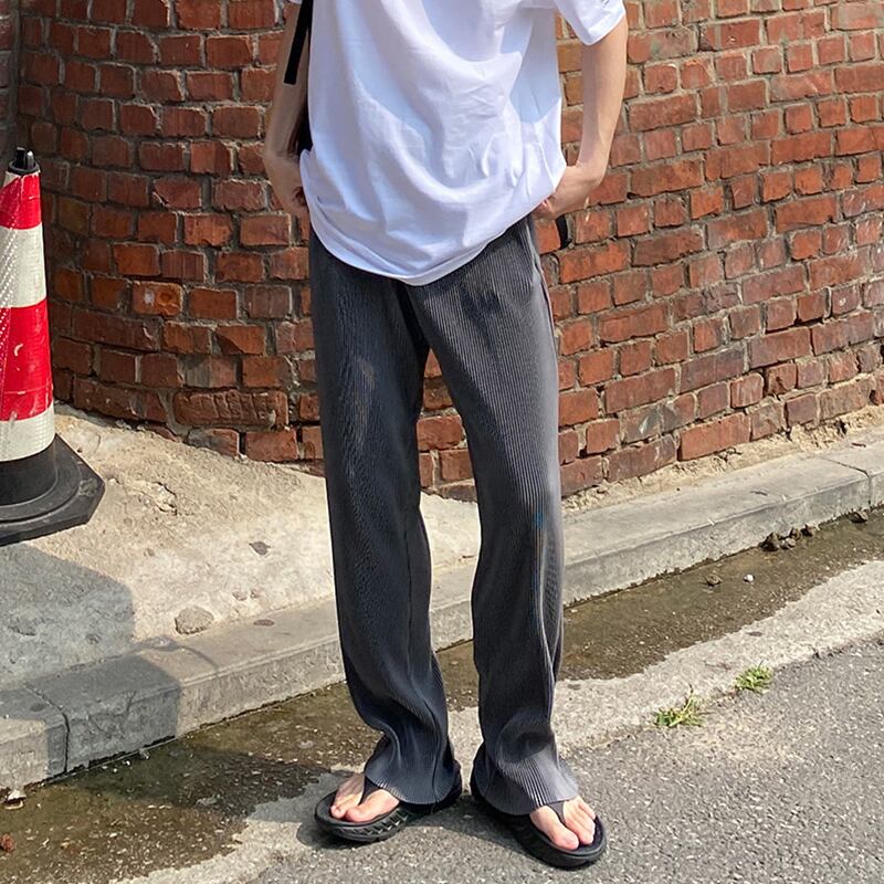 ヒップホップハイストリートパンツメンズルーズストレート韓国トレンドオールマッチドレープワイドレッグモップアイスシルクカジュアルパンツ BLUU55841429524
