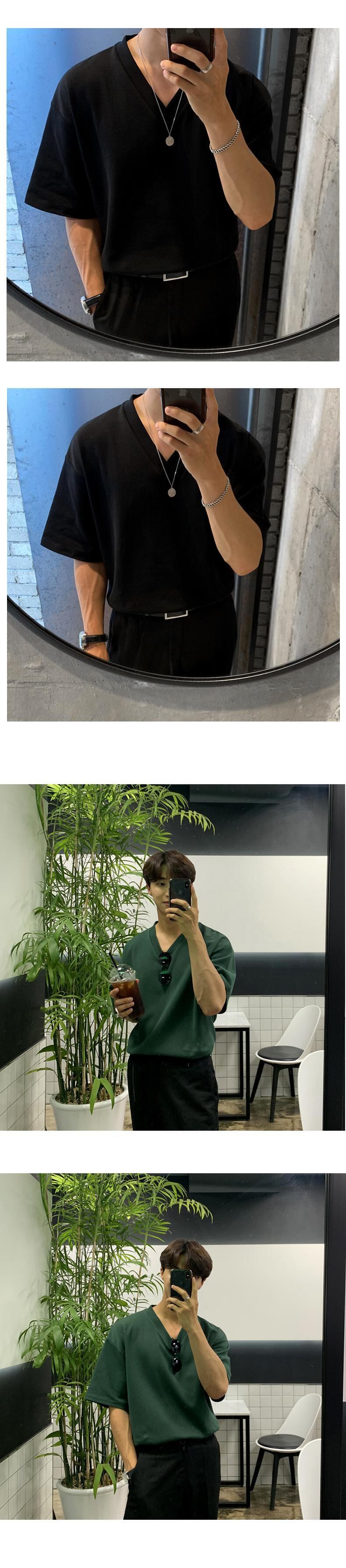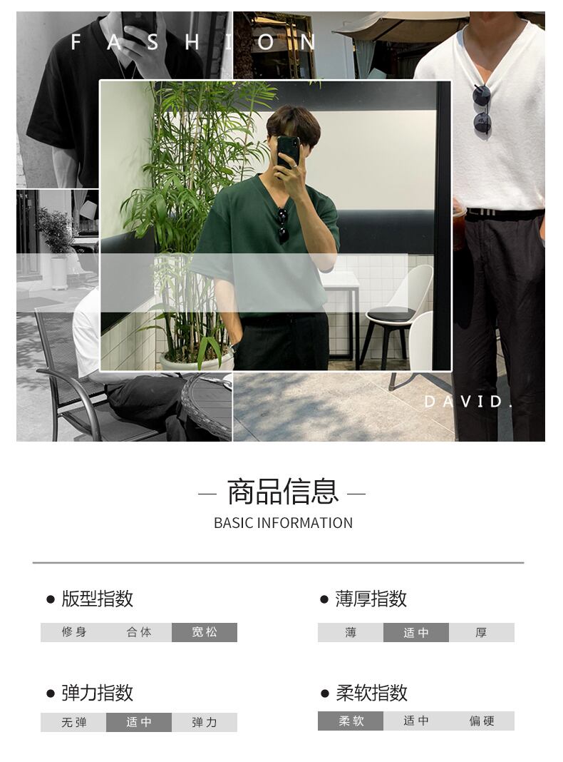 夏の新作半袖TシャツメンズトレンドコットンVネックルーズTシャツ無地シンプルバージョンオールマッチ香港スタイルハーフスリーブ サマー 夏物 ソリッドカラー BLUU61465406531