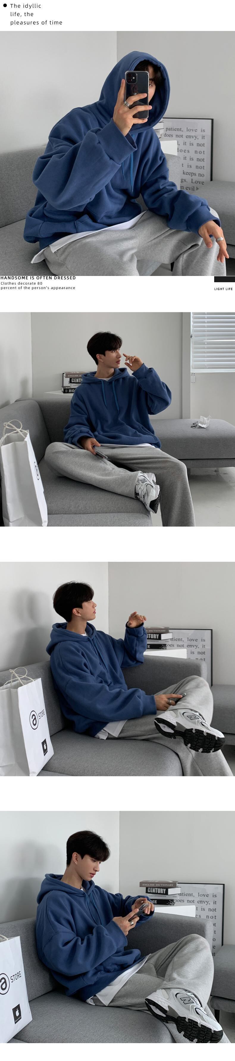 秋冬新作無地セーターメンズフード付きタイドブランドバージョンプルオーバー服香港スタイルルーズジャケットタイドイン オータム 秋物 ウィンター 冬物 ソリッドカラー BLUU28548227120