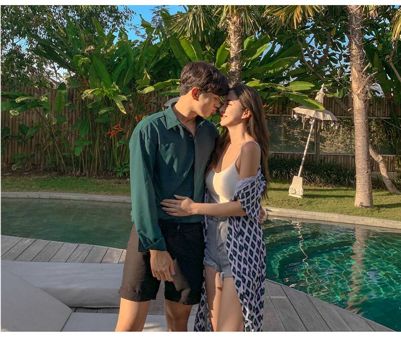 2022年夏の新作シャツメンズカジュアルバージョンの香港スタイルのeseカップルシャツ薄手の無地長袖ルーズ ロング サマー 夏物 ソリッドカラー BLUU49622331516
