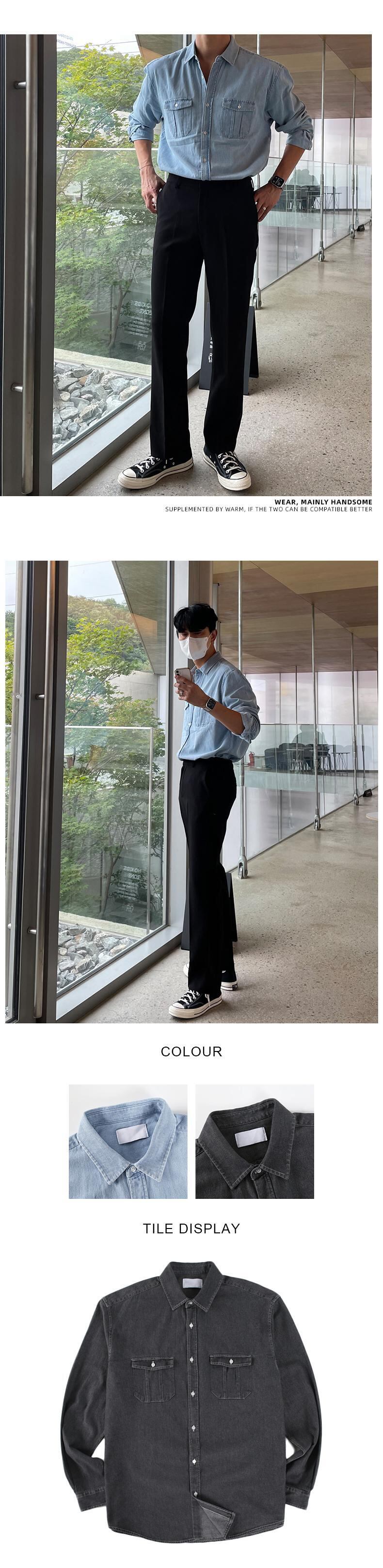 香港スタイルのレトロデニムシャツメンズ長袖タイドブランドルーズバージョンのトレンドカジュアルシャツオールマッチルーズジャケットタイド ロング BLUU71643028562