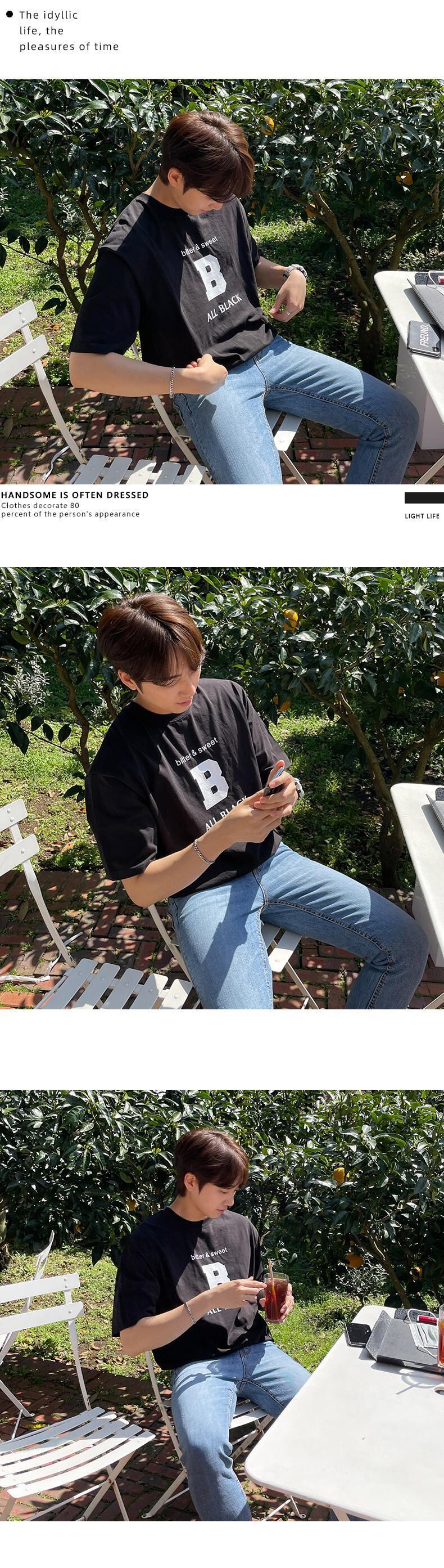 2022年夏の新作半袖メンズコットンタイドブランドトレンドルーズラウンドネックシンプルハーフスリーブボトミングシャツトップ サマー 夏物 Oネック BLUU64373195662