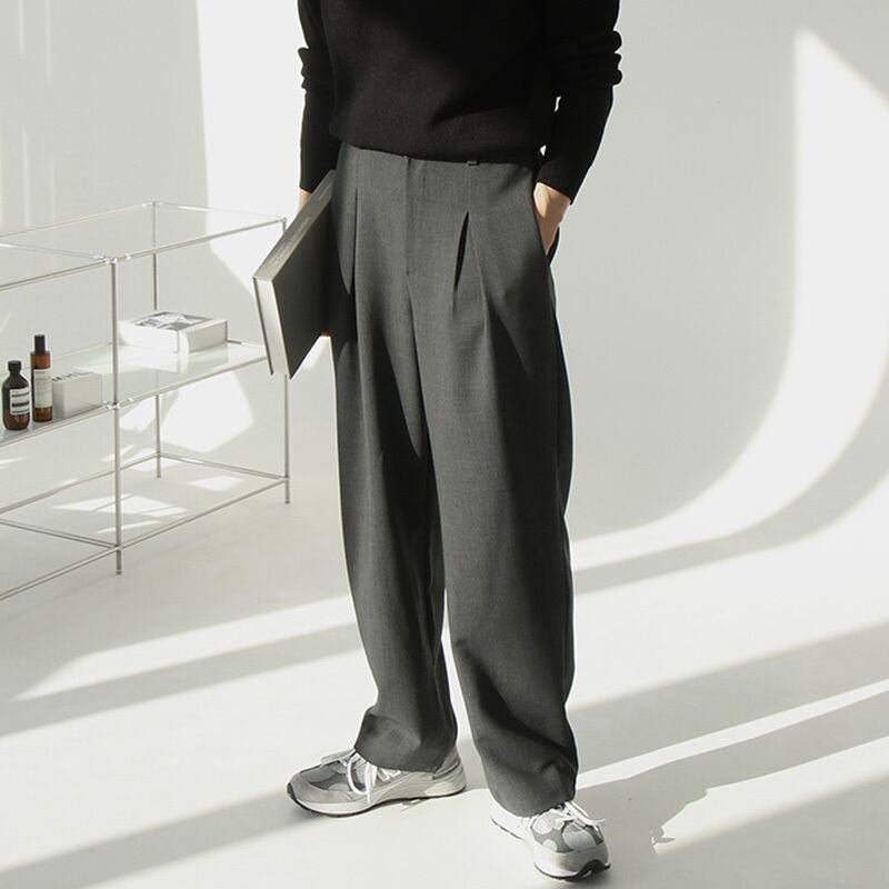 スーツパンツメンズハイエンドドレープ感トレンドストレートチューブルーズダングル感ワイドレッグカジュアルロングパンツレトロオールマッチ BLUU8275943883