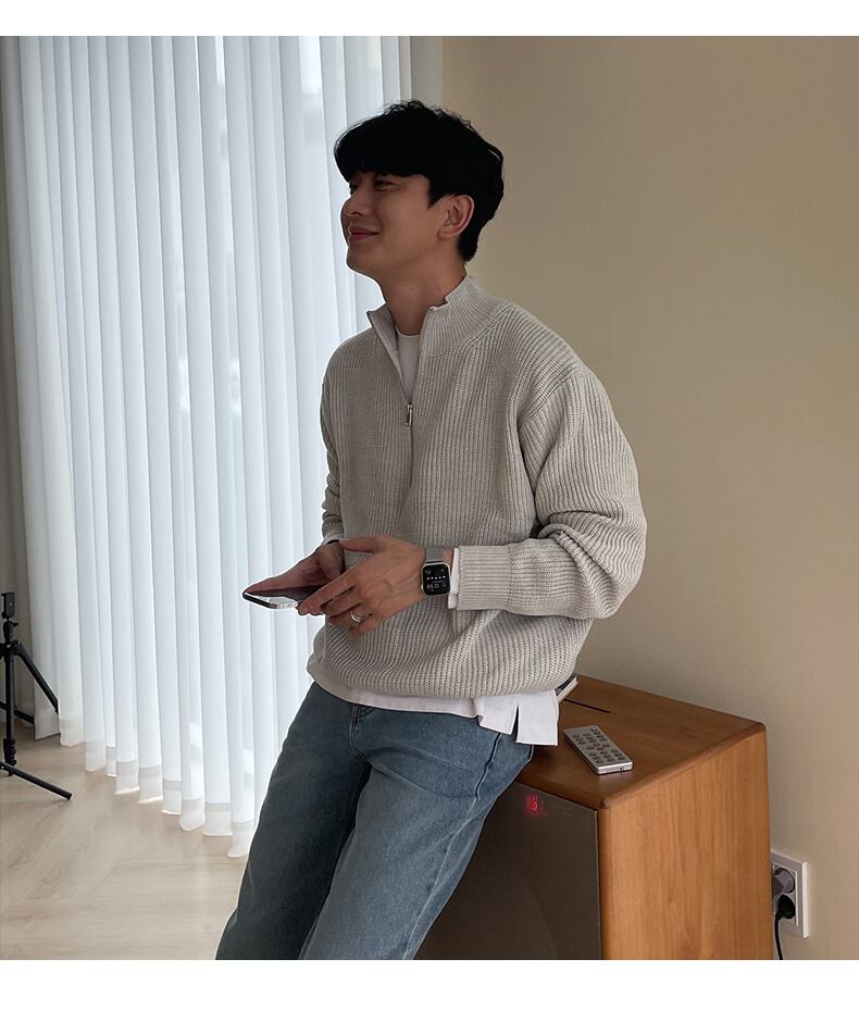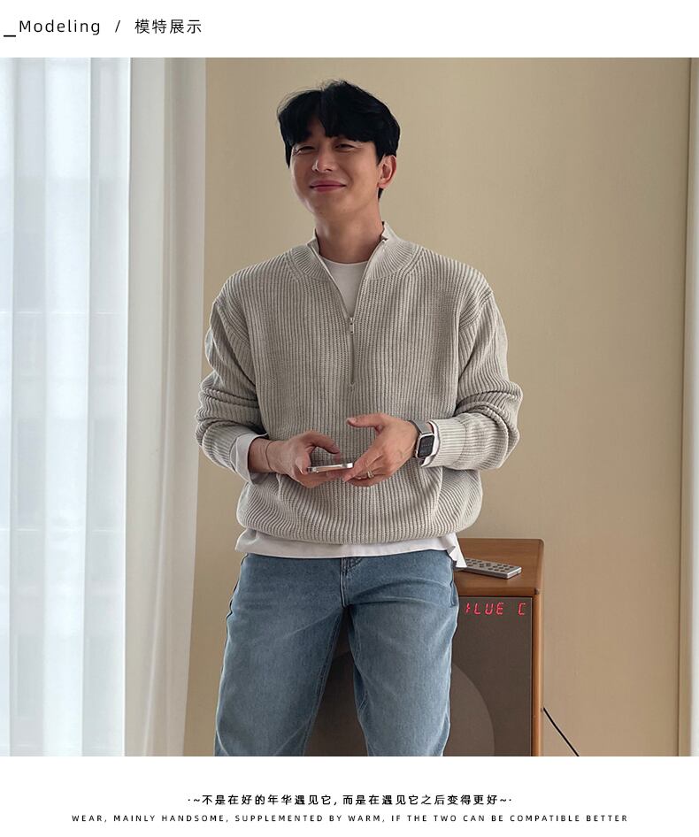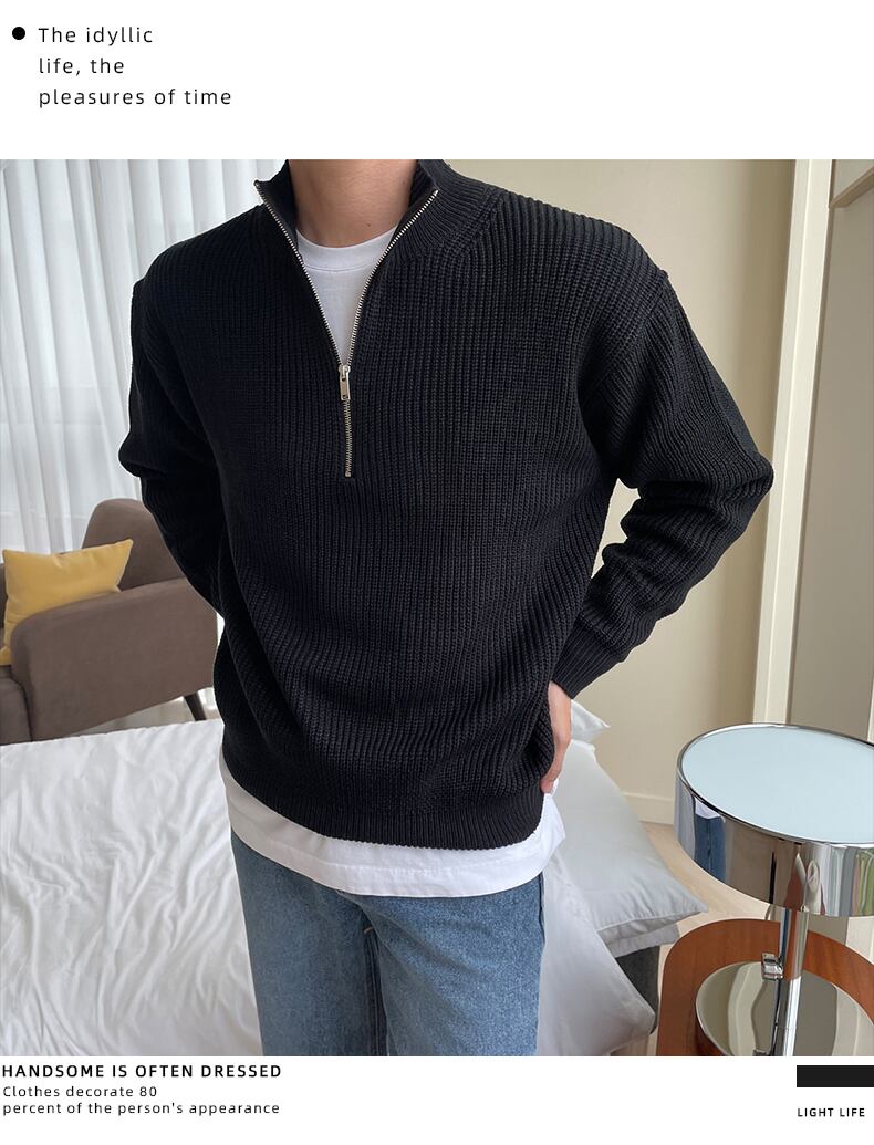 秋冬バージョンジッパーセーターメンズラペルタイドブランドルーズオールマッチ無地ニットセータートップカジュアルジャケットタイド オータム 秋物 ウィンター 冬物 ソリッドカラー BLUU73419161517