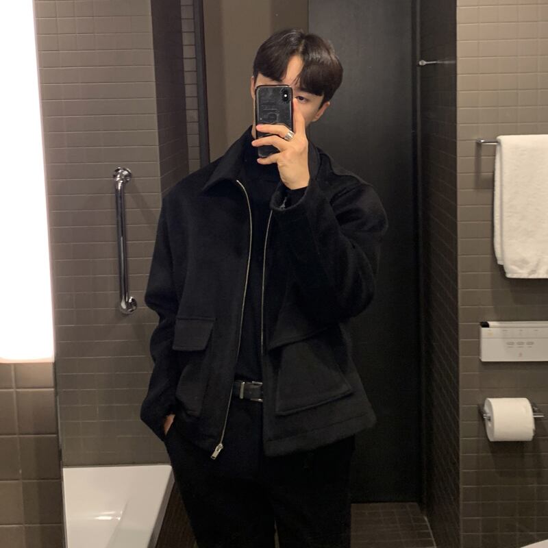 ウールコートメンズ2021年秋冬新バージョントレンドハンサムルーズカジュアルショートウールコートブリティッシュスタイル オータム 秋物 ウィンター 冬物 BLUU42673011211