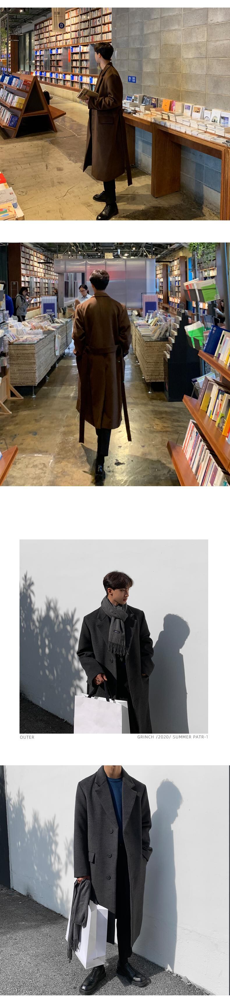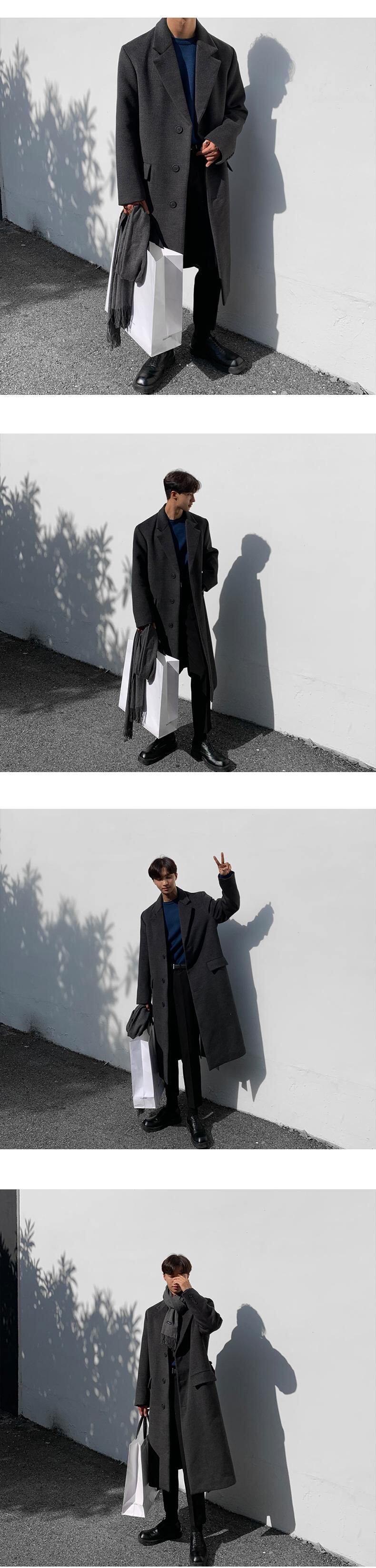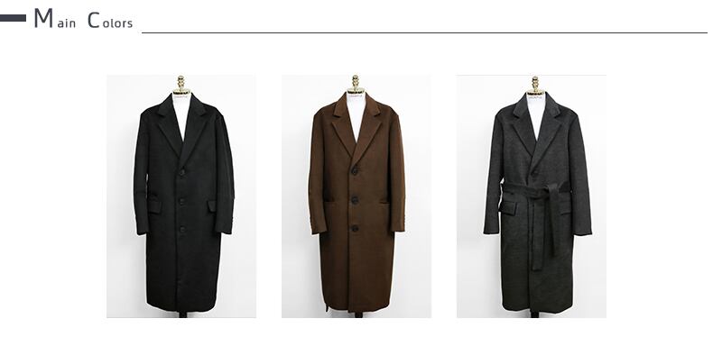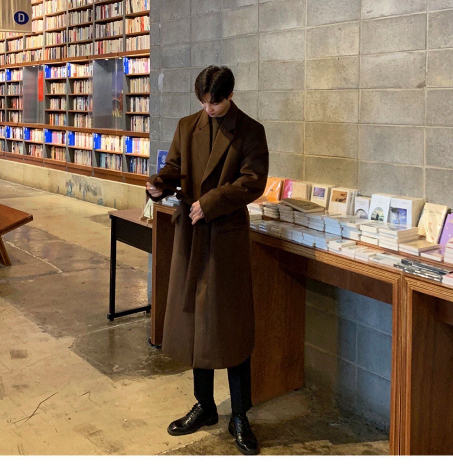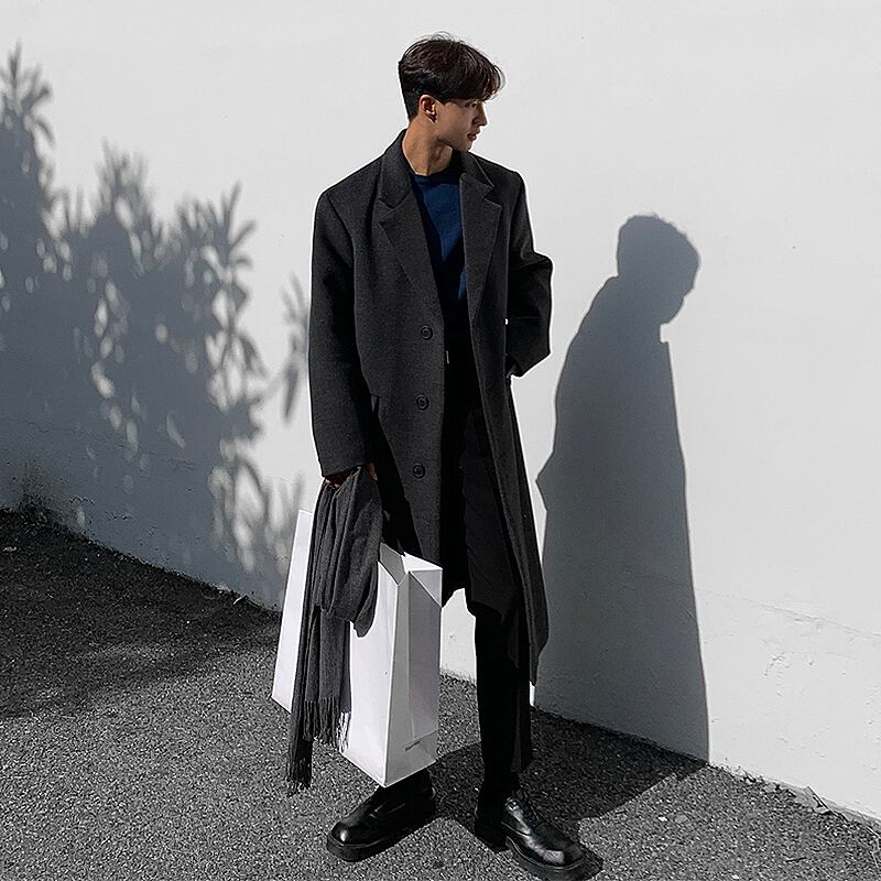 ウールコートメンズミドル丈オーバーザニーウィンターシックニングノン両面カシミアウインドブレーカージャケットユースハンサム 冬物 BLUU20183993027