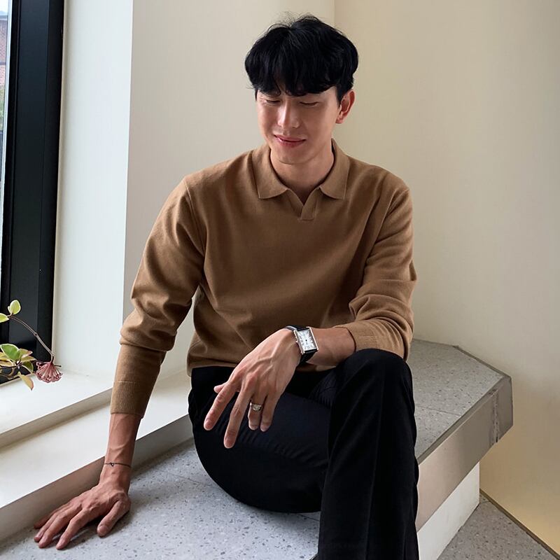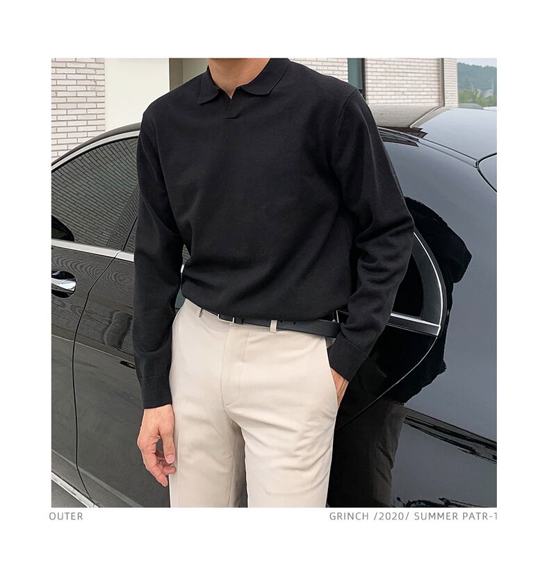 2022年新作セーターメンズバージョントレンド無地ニットポロシャツ長袖ボトミングセーターユースカジュアルオールマッチ ロング ソリッドカラー BLUU16595948526