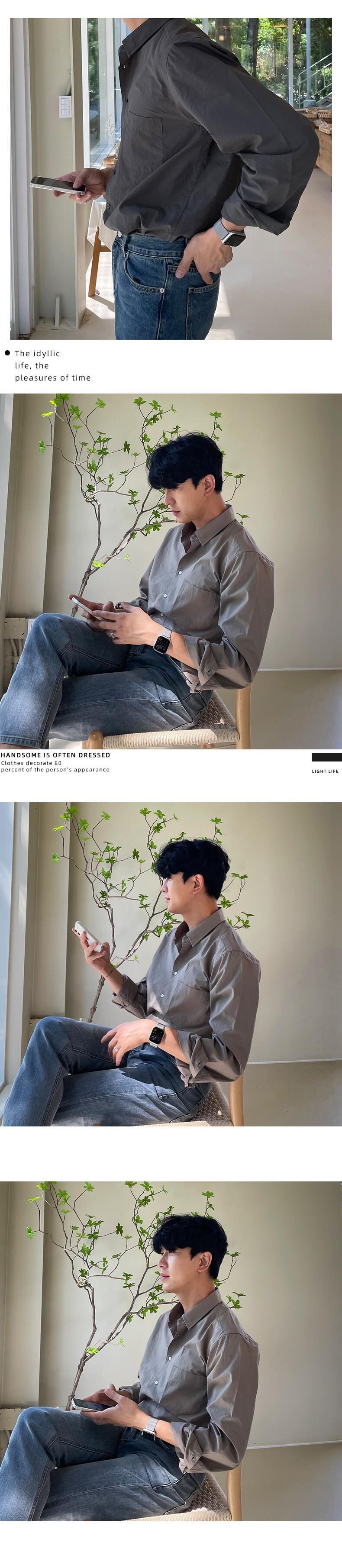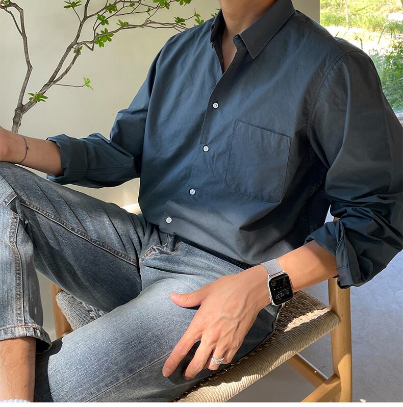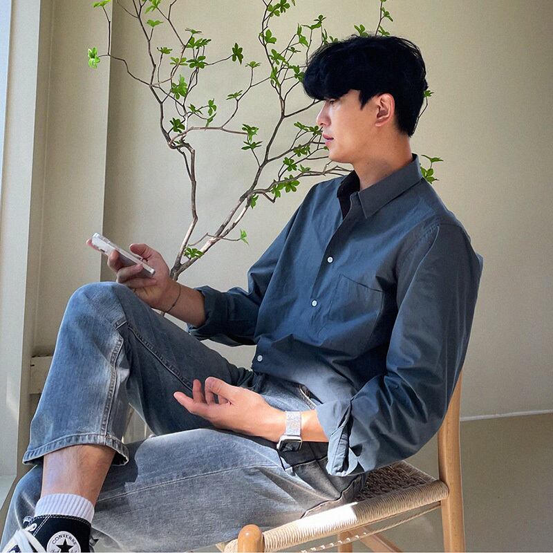 2022年春の長袖シャツメンズハイエンドインチシャツトップバージョンルーズ香港スタイルレトロカジュアルシャツジャケット ロング スプリング 春物 BLUU26638084628