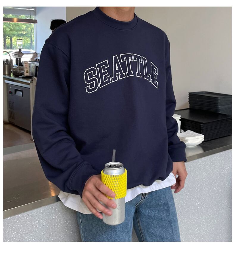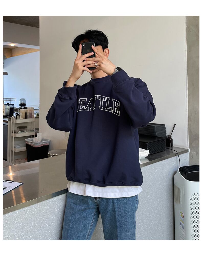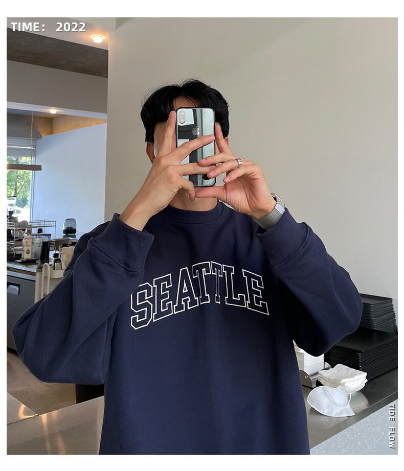 春のラウンドネックセーターメンズタイドブランド香港スタイルレトロアルファベットプリントプルオーバートップバージョンルーズカジュアルジャケットタイド スプリング 春物 Oネック BLUU7598131821