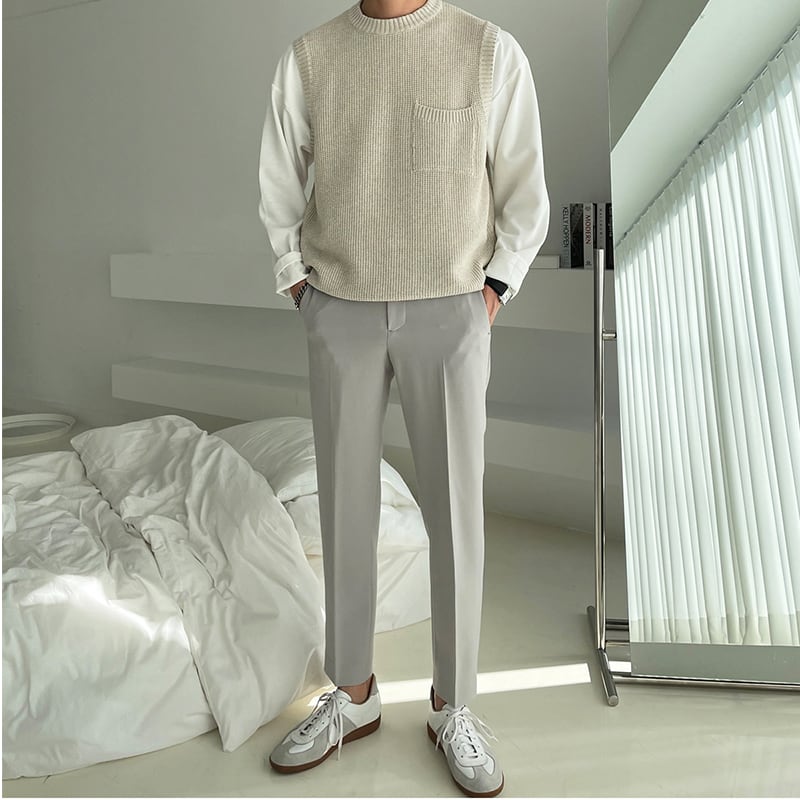 2022年の新しいノースリーブベストセーターメンズチョッキトレンドルーズソリッドカラーラウンドネックセーターベストコート Oネック BLUU23447546446