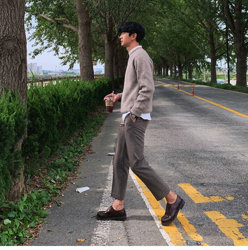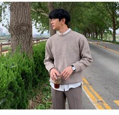 秋冬新作ラウンドネックセーターメンズ秋冬厚手無地ニットセーターバージョントレンドパーソナリティルーズで怠惰な風 オータム 秋物 ウィンター 冬物 Oネック ソリッドカラー BLUU56069900834