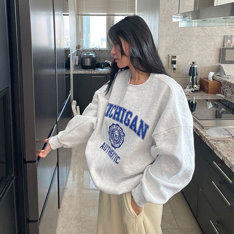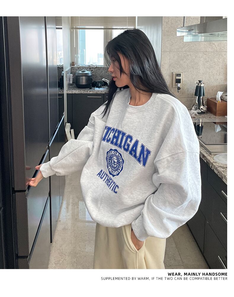 ルーズラウンドネックセーターメンズタイドブランドレタープリントトップストレンドオールマッチカジュアルオーバーサイズコートのバージョン Oネック BLUU48991842527
