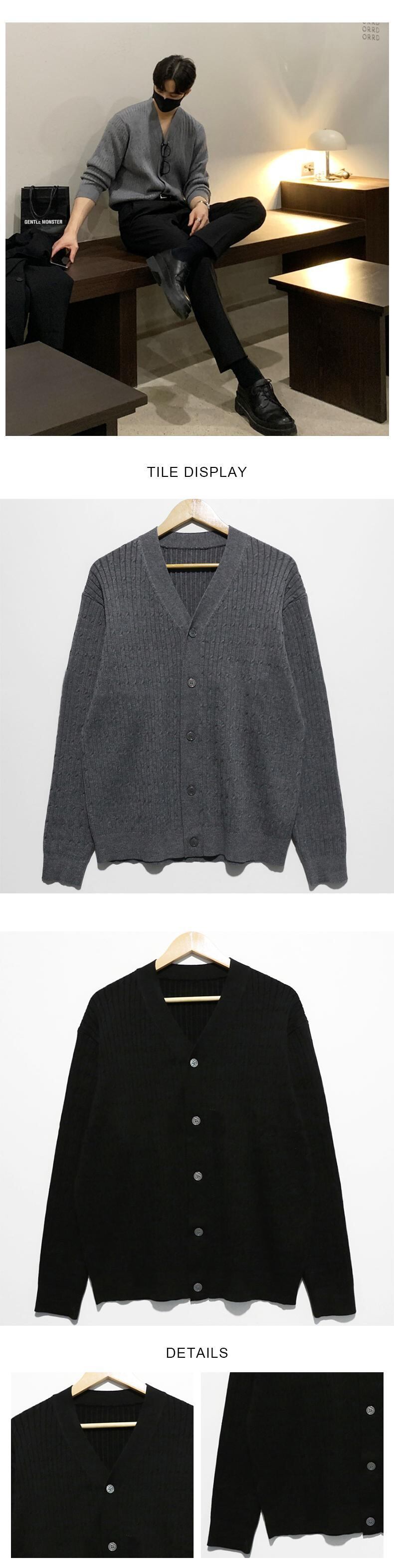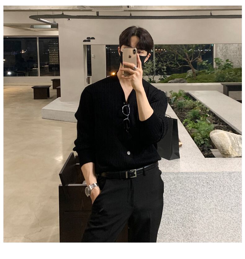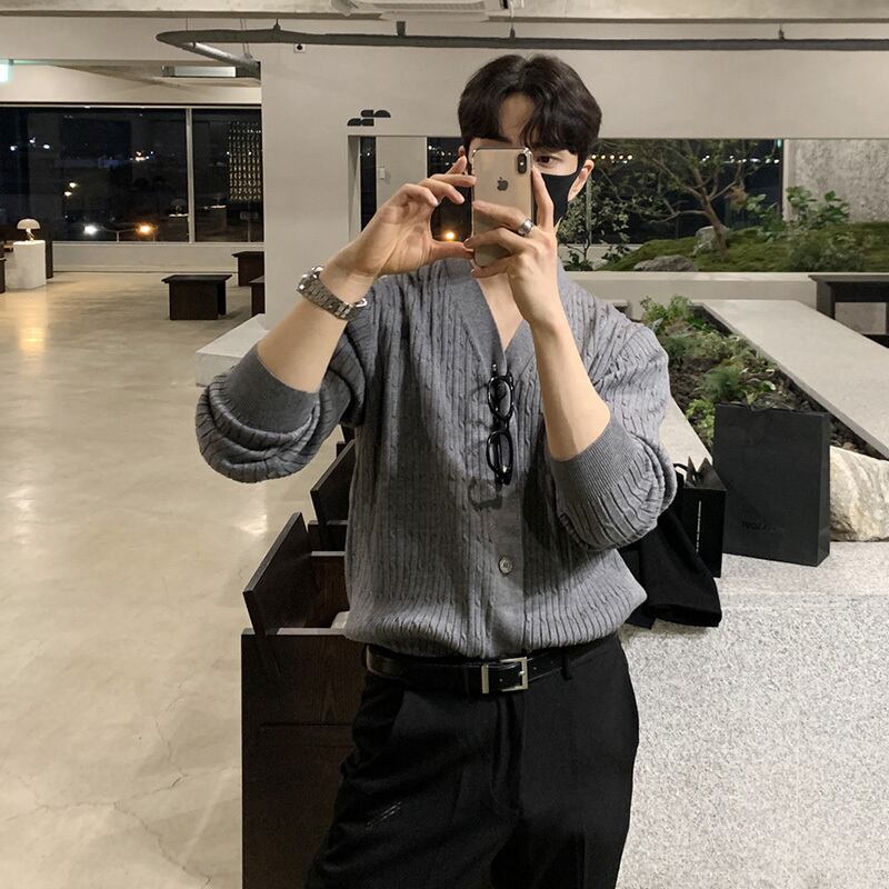 タイドブランドのVネックセーターメンズバージョンは、ルーズな無地のシングルブレストニットセーター香港スタイルのオールマッチカジュアルトップコート ソリッドカラー BLUU48265722298