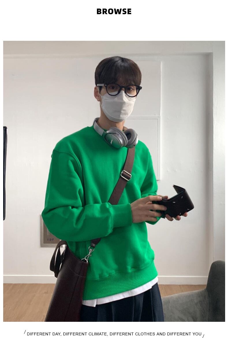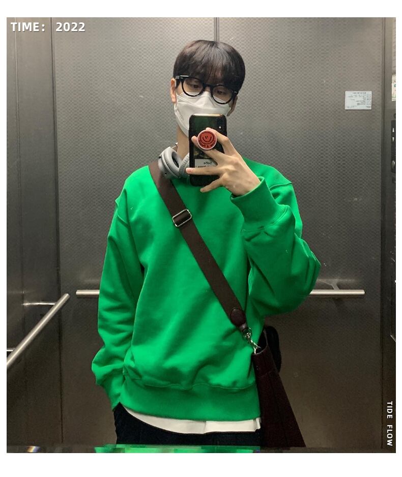 ラウンドネックセーターメンズトレンドインタイドブランドルーズカジュアル無地プルオーバートップ服ジャケット香港スタイルオールマッチのバージョン Oネック ソリッドカラー BLUU39411422532