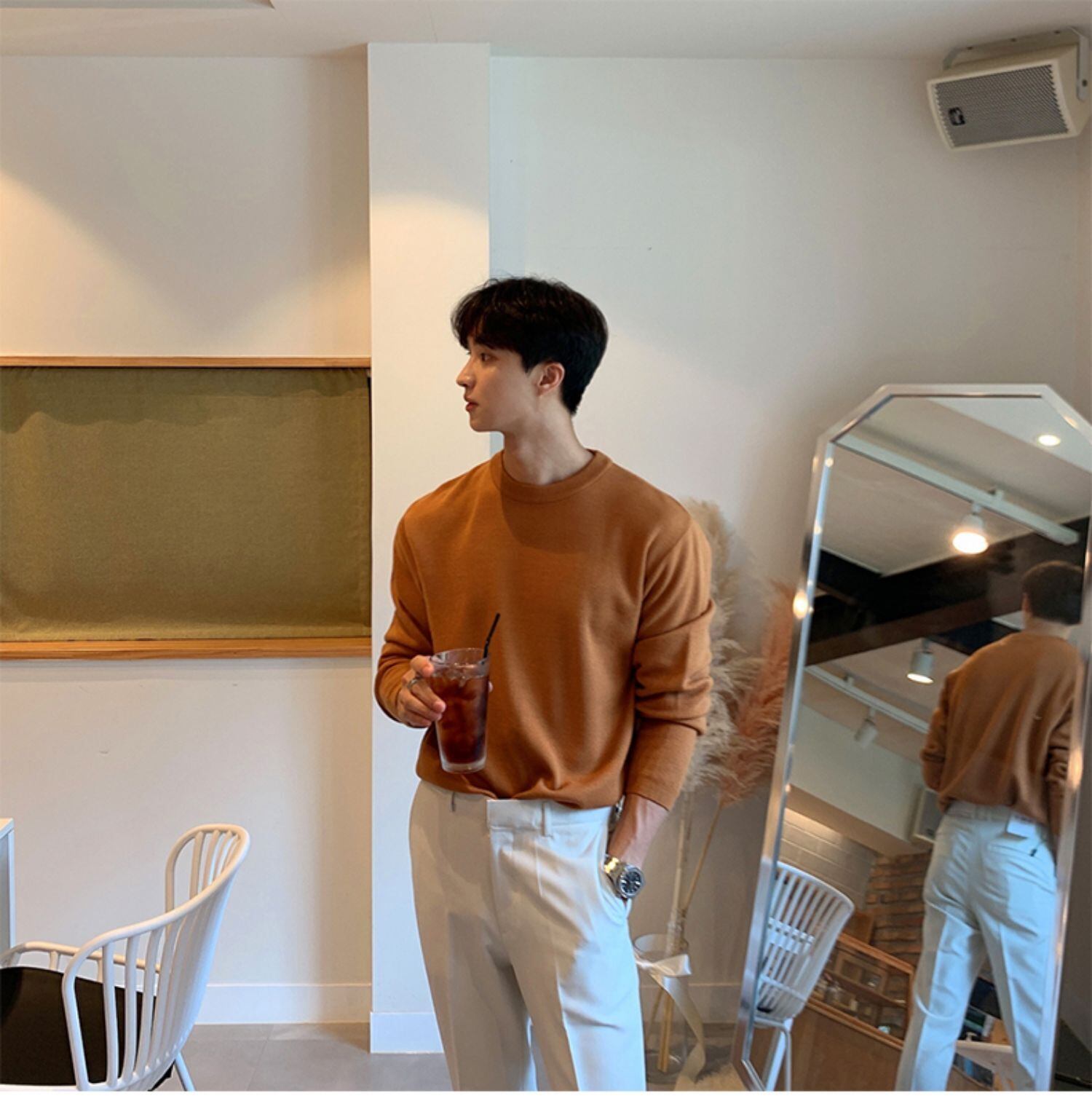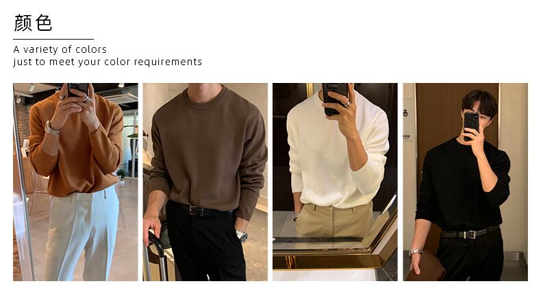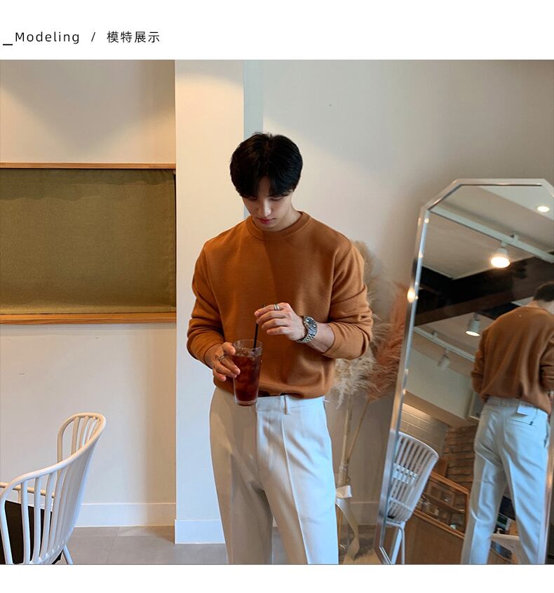 秋冬新作ラウンドネック無地セーターメンズルーズバージョントレンドボトミングセーターアウタースレッディング服カジュアルオールマッチ オータム 秋物 ウィンター 冬物 Oネック ソリッドカラー BLUU13334414475