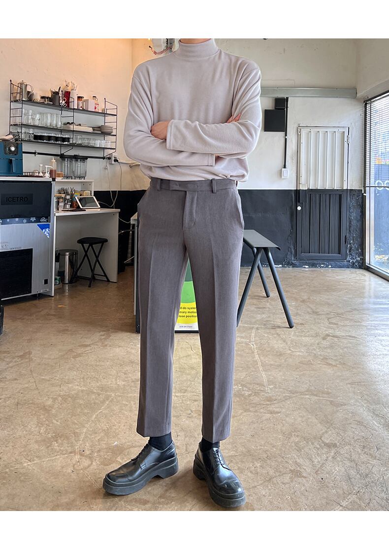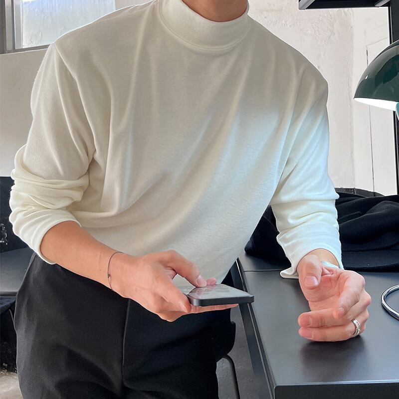 トレンドセミハイカラー長袖Tシャツメンズコットンルーズ香港スタイル無地カジュアルボトミングシャツトップスのバージョン ロング ソリッドカラー BLUU96050710758