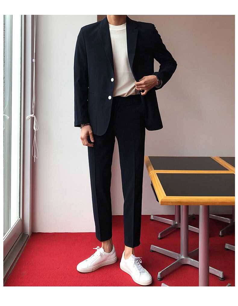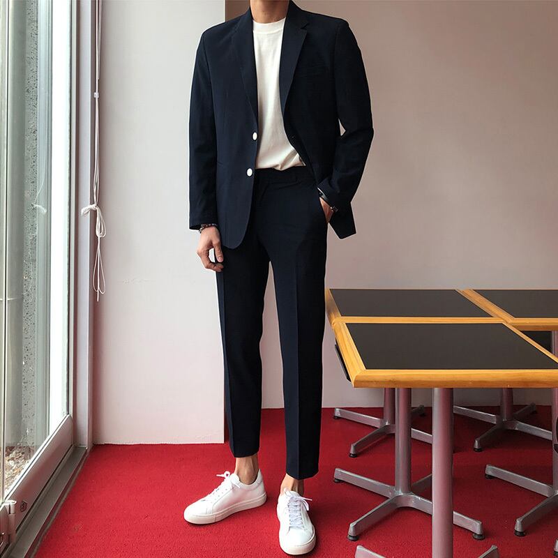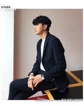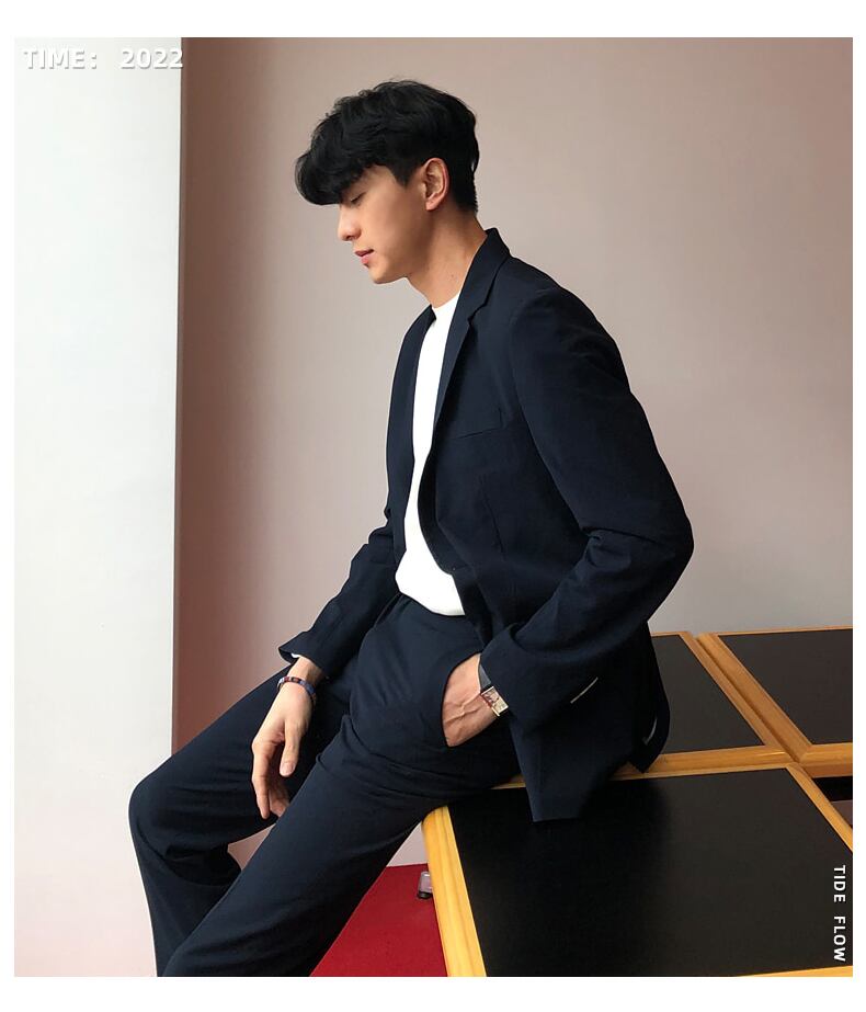 スーツスーツ男性バージョントレンドハンサムスリムトップ花婿付け添人新郎結婚式ビジネスマルスーツスモールスーツジャケット BLUU17156679944