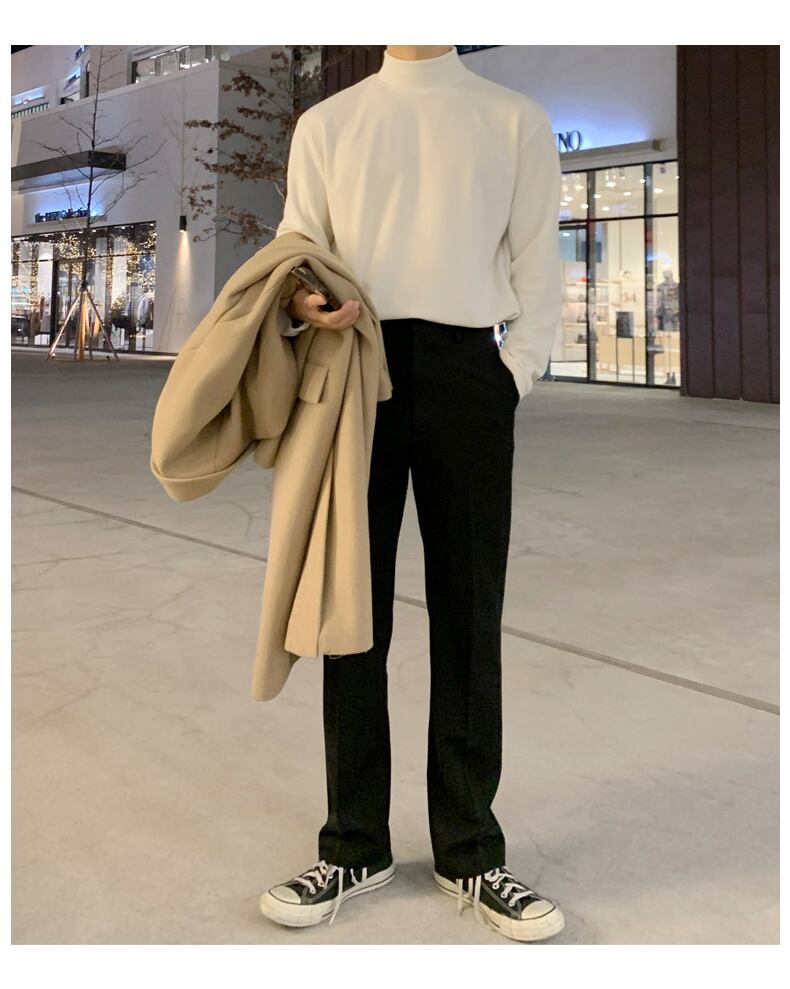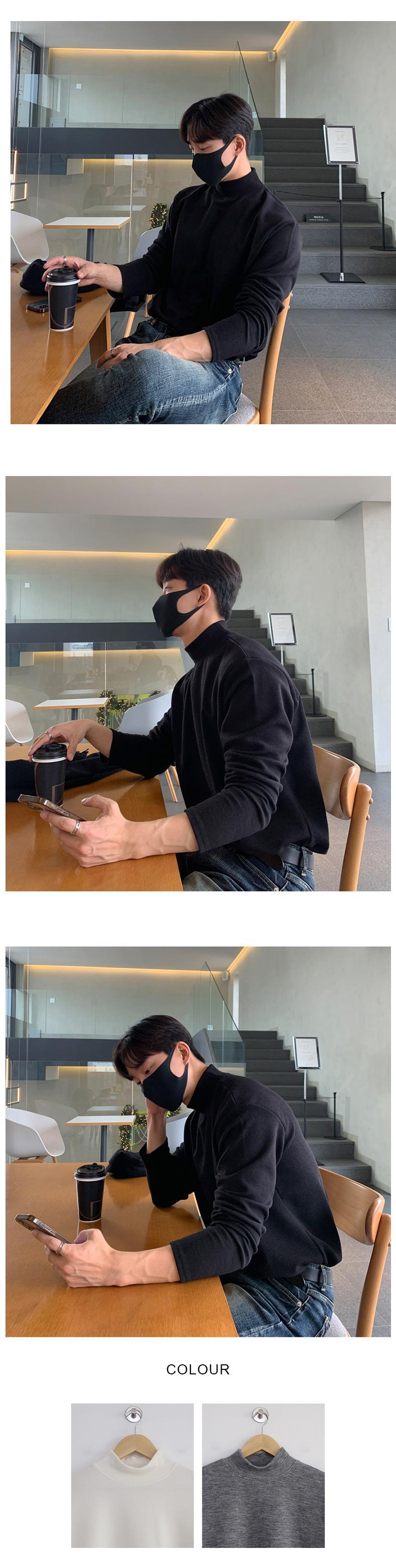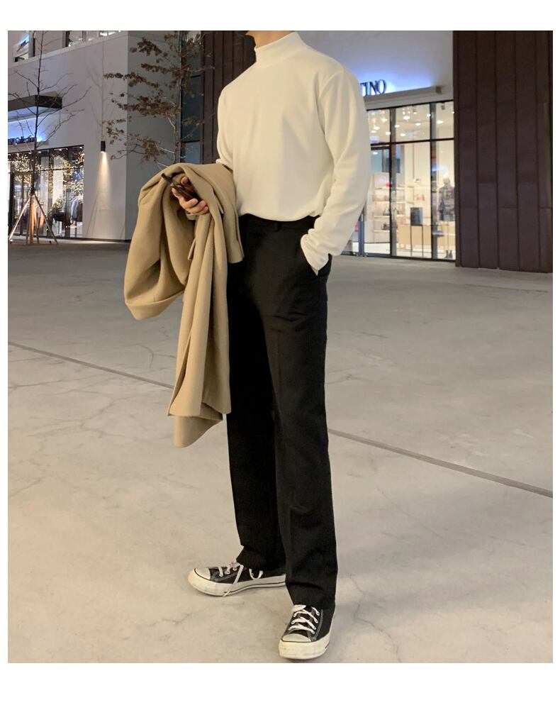 ハーフハイカラーの長袖Tシャツメンズコットンルーズボトミングシャツバージョンのトレンド香港スタイルのオールマッチ無地と服の内側 ロング ソリッドカラー BLUU75865467313