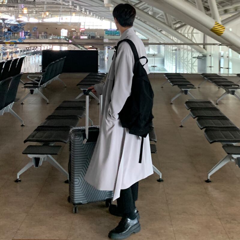 春秋ウインドブレーカーメンズミドル丈オーバーザニースタイルトレンディなハンサムユースカジュアルルーズコートコートブリティッシュスタイル スプリング 春物 オータム 秋物 BLUU50430518534