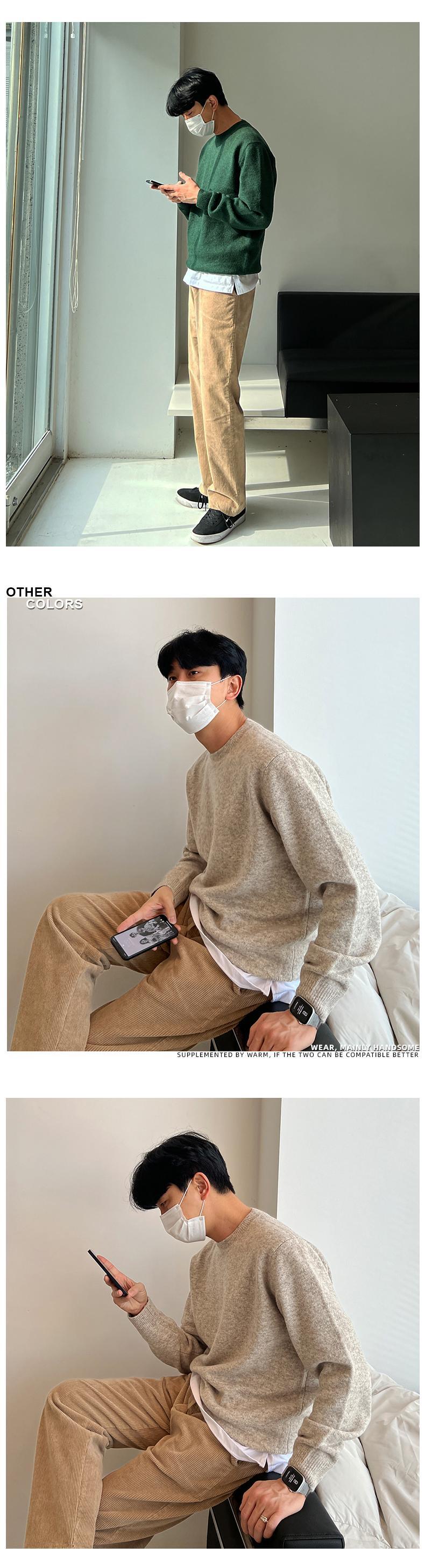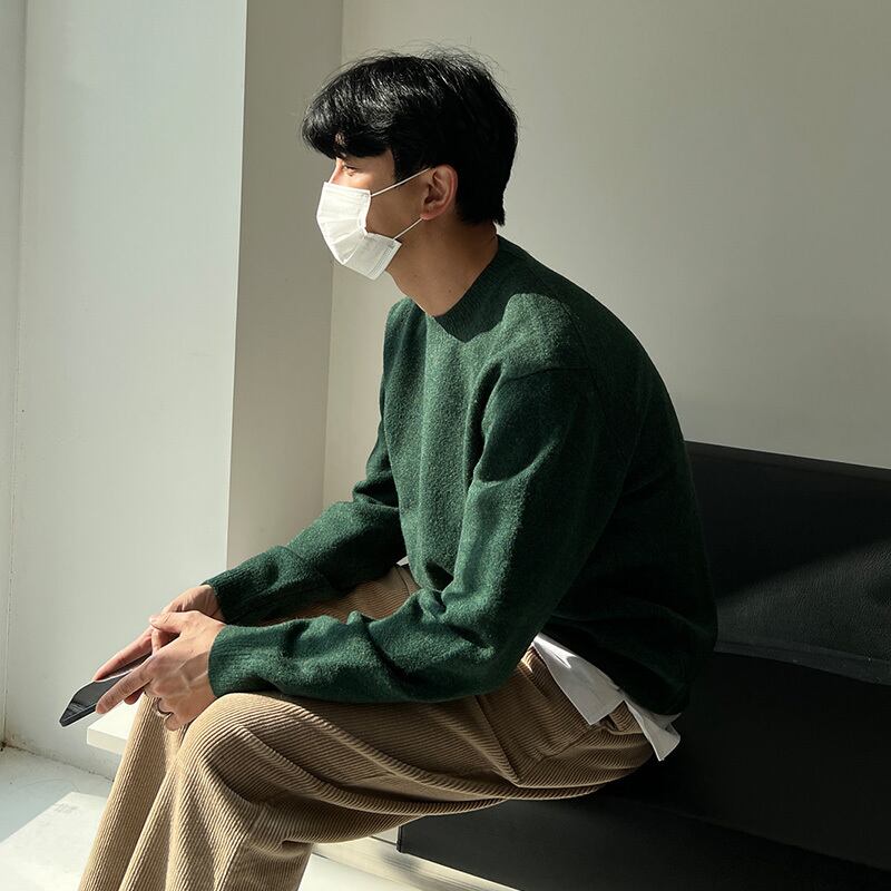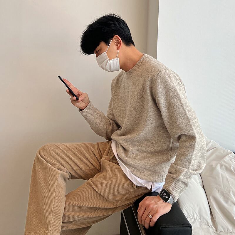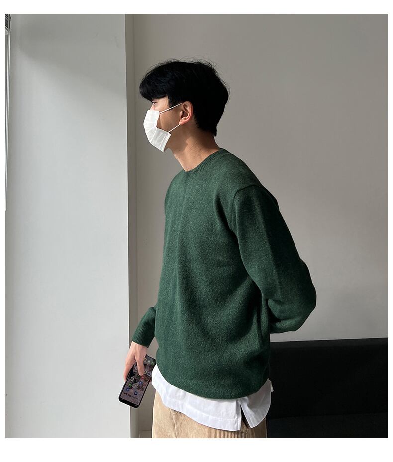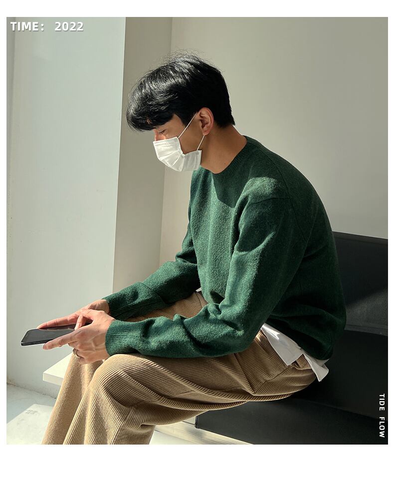冬の厚みのあるラウンドネックセーターメンズタイドブランドルーズ無地シンプルプルオーバーボトミングニットセータートップコートオールマッチ ウィンター 冬物 Oネック ソリッドカラー BLUU23092695811