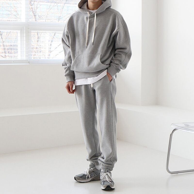 2022年の新しいスポーツスーツメンズタイドブランドルーズソリッドカラーフード付きセーターメンズオールマッチストレートカジュアルカジュアルレギンス BLUU58861096548