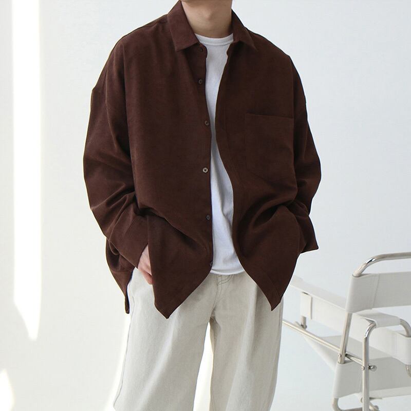 2022年春秋香港スタイルレトロシャツメンズ長袖タイドブランドルーズバージョン無地カジュアルシャツジャケットオールマッチ ロング スプリング 春物 オータム 秋物 ソリッドカラー BLUU24054695795