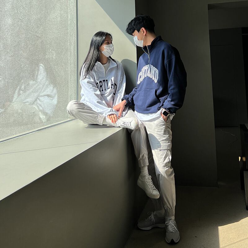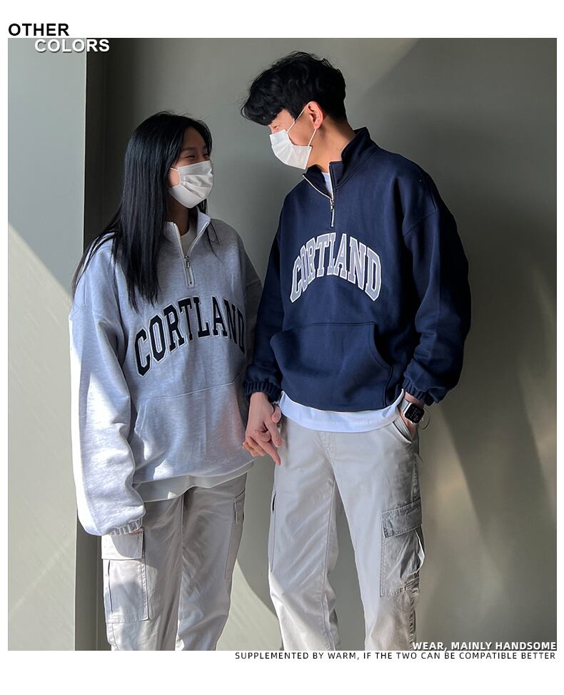 2022年春のスタンドアップカラーセーターメンズ長袖タイドブランドインルーズトップ香港スタイルレトロカジュアルカップルジャケット ロング スプリング 春物 BLUU82202441959