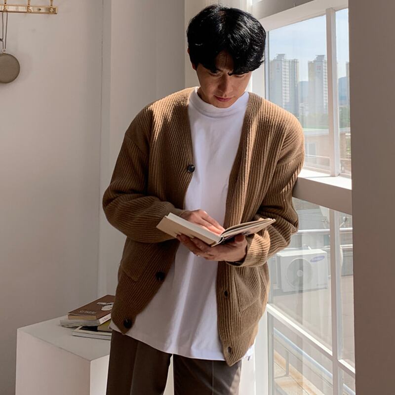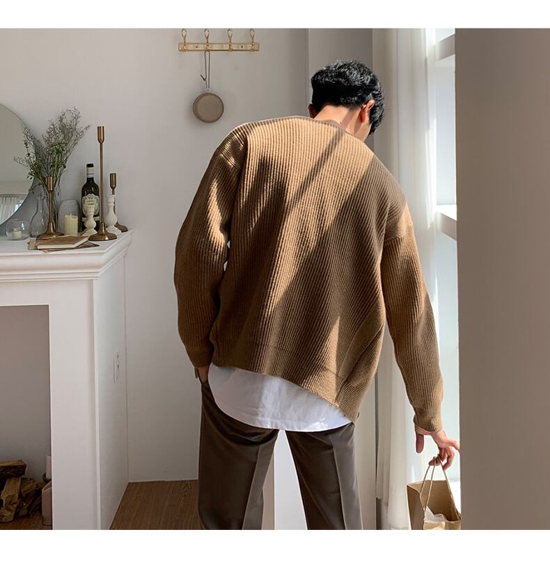 2022年春の新作Vネックカーディガンセーターメンズバージョンルーズでレイジーなスタイルの無地ニットセーターカジュアルジャケットトレンド スプリング 春物 ソリッドカラー BLUU81741429553