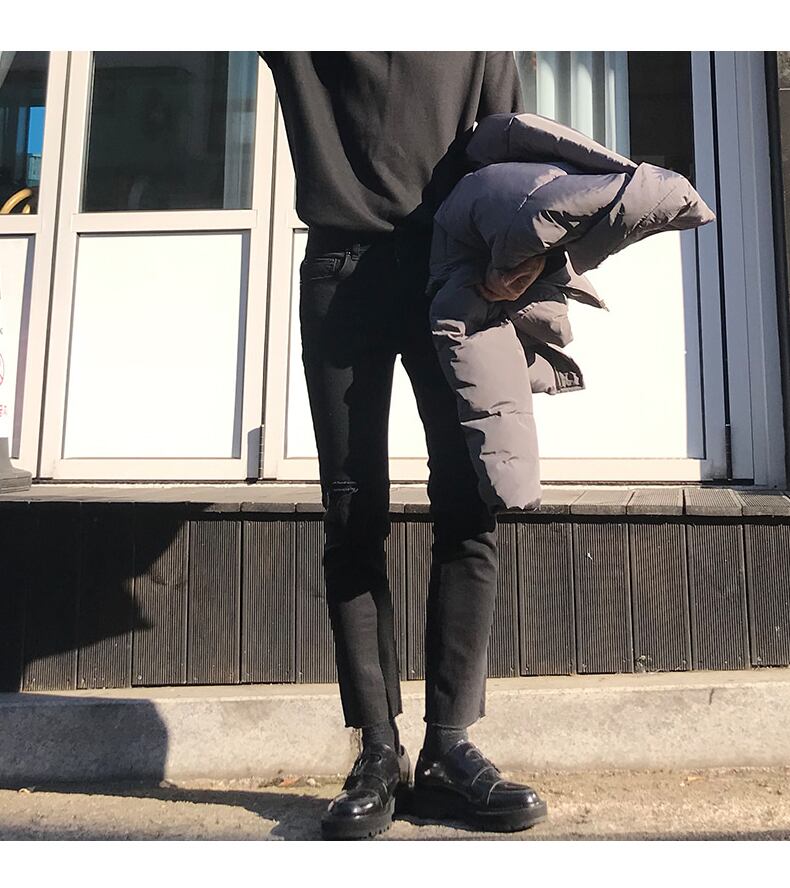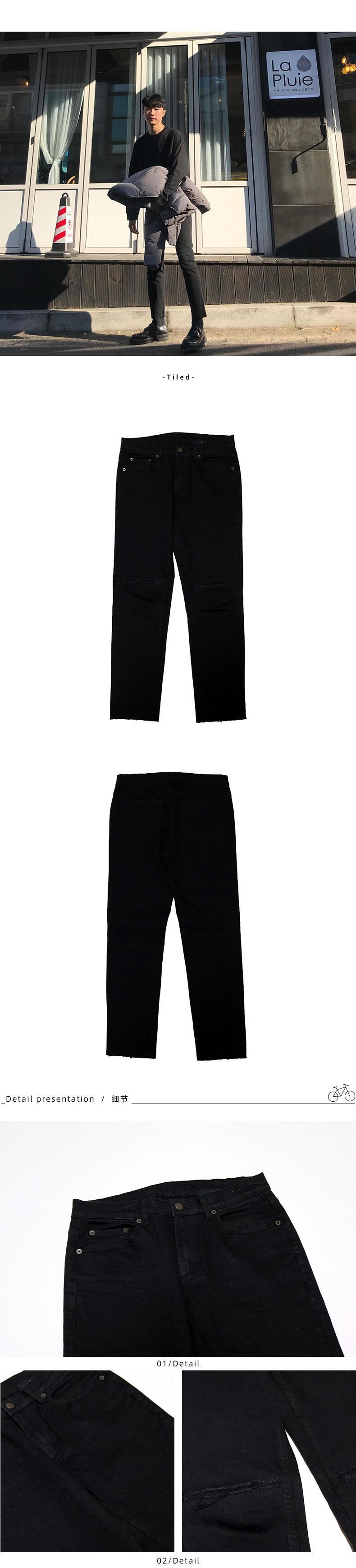 ブラックジーンズメンズファッションブランドスリムスモールフットホール9点伸縮性カジュアルパンツバージョンのトレンドはハンサムで用途が広い エラスティック BLUU21606573859