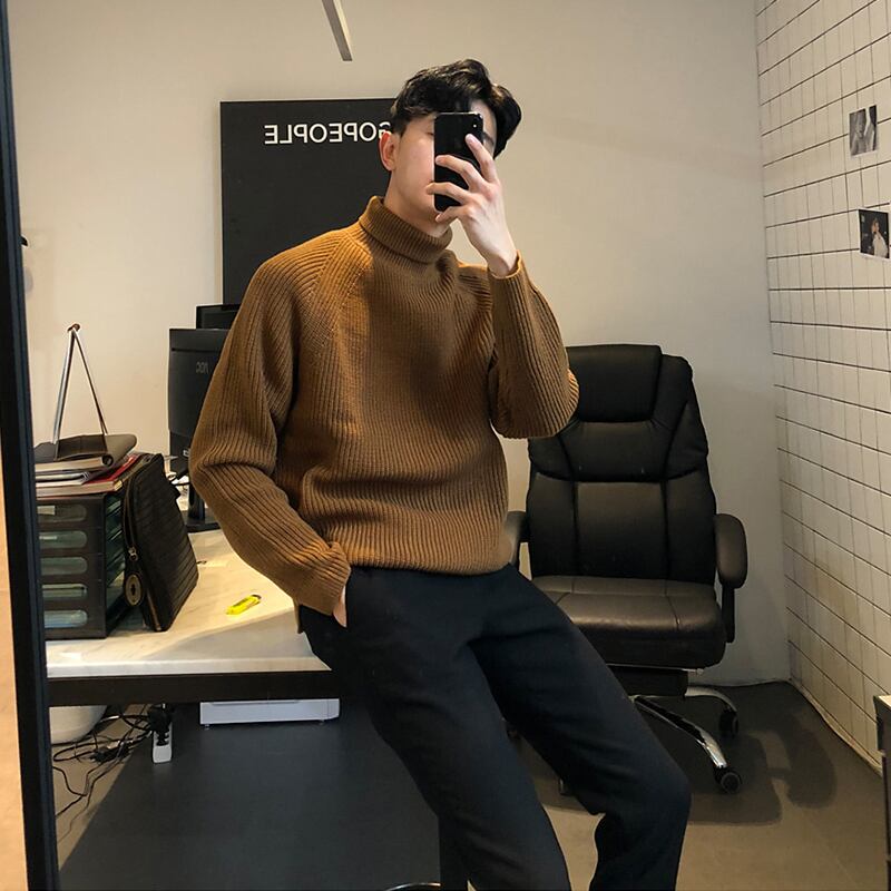 秋冬タートルネックセーターメンズバージョントレンド厚みのあるラペルホワイトインナーボトムニットセーター香港スタイルジャケット オータム 秋物 ウィンター 冬物 BLUU58127009379