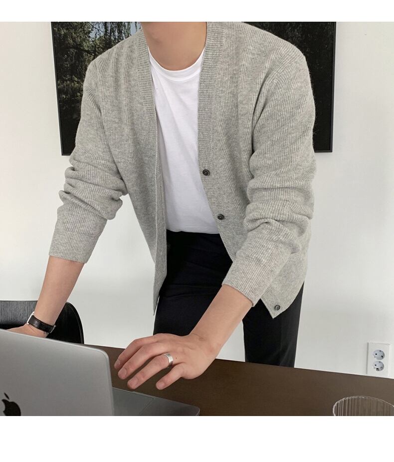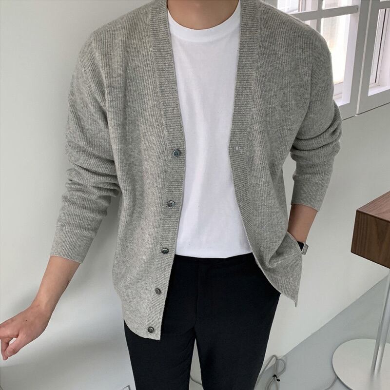 無地ニットカーディガンジャケットメンズ秋のトレンドシングルブレストVネックセータールーズカジュアル怠惰な風 オータム 秋物 ソリッドカラー BLUU49684233325