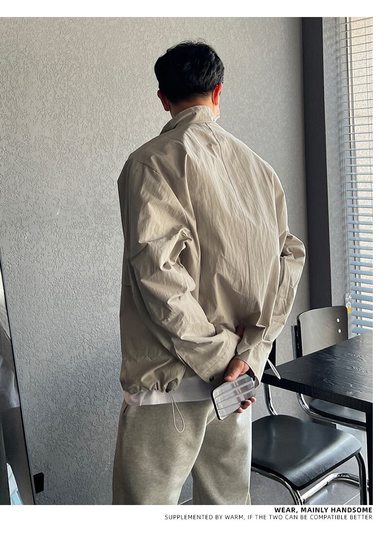 2022スタンドカラージャケットメンズタイドルーズソリッドカラーワークウェアトップオールマッチバージョントレンドハンサムジャケット BLUU32131199972