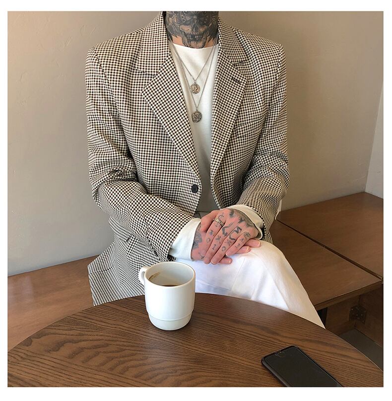 2022年秋冬新作メンズバージョンスリムファッションクリックラージチェック柄ワンピーススモールスーツジャケットトレンディメンズ オータム 秋物 ウィンター 冬物 BLUU52237223764