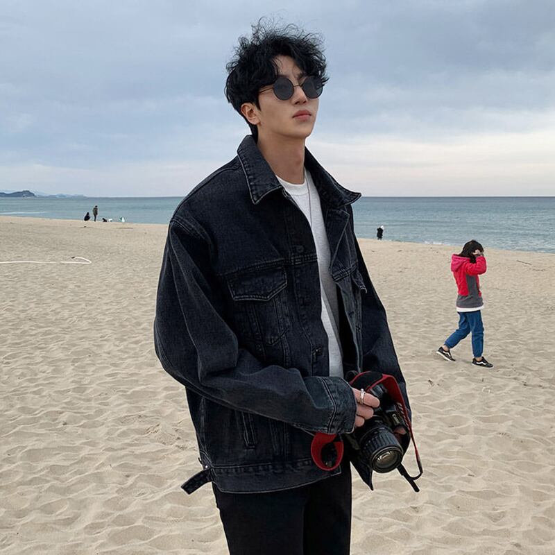 秋の新作デニムジャケットメンズラペルタイドブランドルーズ香港スタイルレトロツーリングジャケットカジュアルトップスオールマッチタイド オータム 秋物 BLUU4017822128