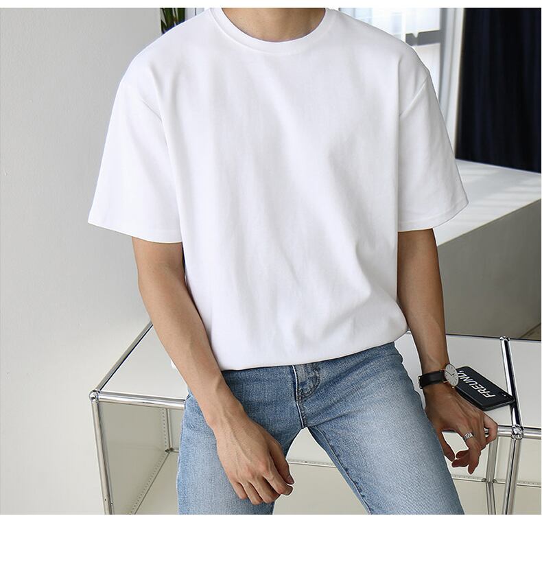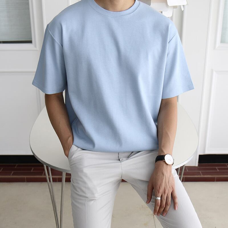 半袖メンズタイドブランドトレンドバージョンのピュアコットンハーフスリーブルーズ無地シンプルワイルドラウンドネックボトミングシャツTシャツトップ Oネック ソリッドカラー BLUU61741182127