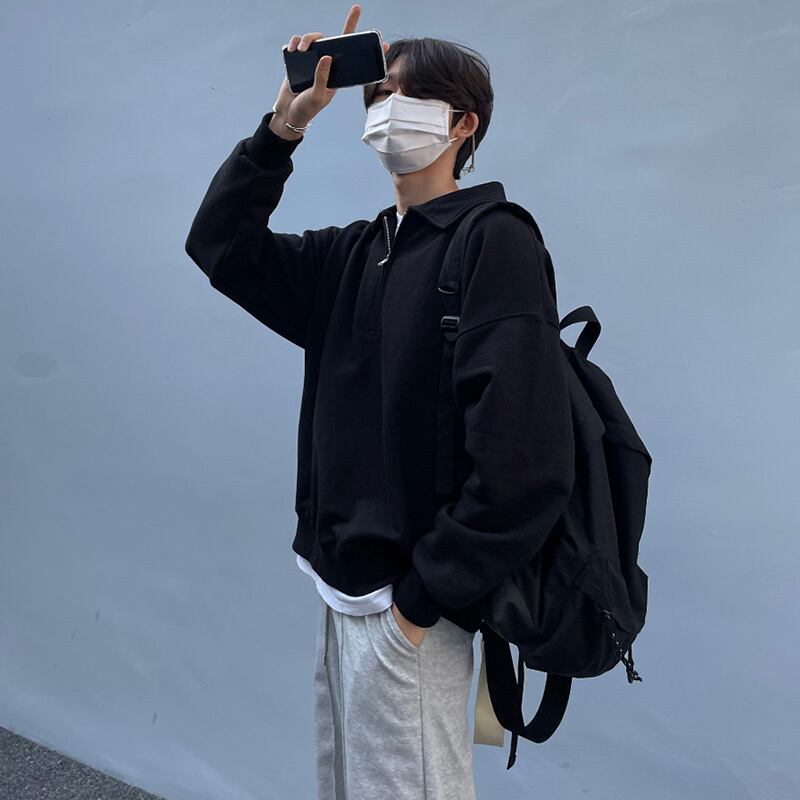 2022年の新しい長袖セーターメンズトレンディインバージョンのトレンドルーズレイジーウィンドジャケット香港スタイルの無地の服 ロング ソリッドカラー BLUU90687036608