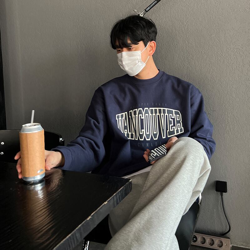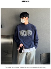 バージョントレンドプルオーバーセーターメンズ長袖タイドブランドインルーズカジュアルラウンドネックレタープリントTシャツトップコート ロング Oネック BLUU11305797485
