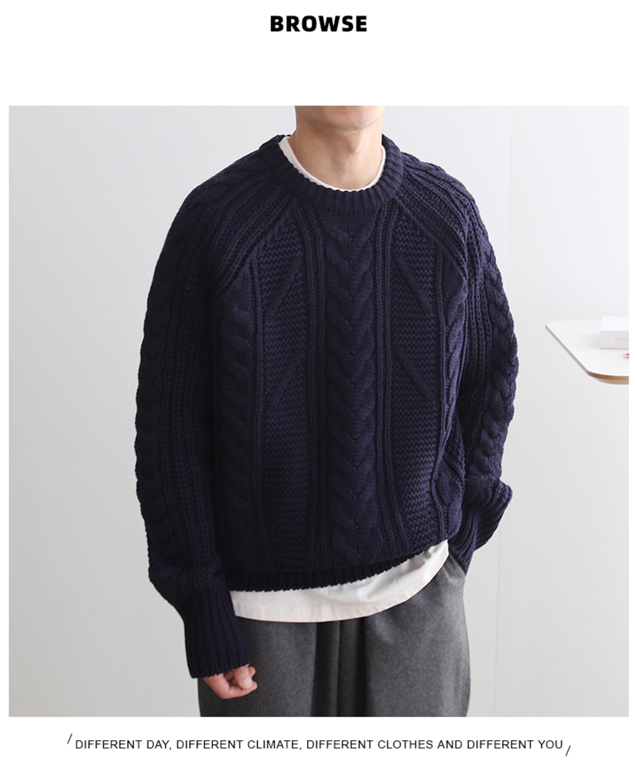 春のラウンドネックセーターメンズタイドブランドルーズバージョントレンドオールマッチ無地インナーボトムニットセータートップコート スプリング 春物 Oネック ソリッドカラー BLUU13193349503