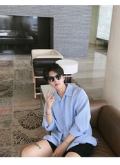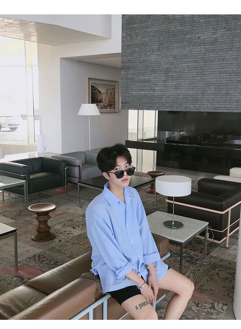非常に妖精のシャツ男性ルフィアンハンサムカジュアルトレンドハンサム夏薄長袖シャツ日焼け止めシャツオールマッチトレンド ロング サマー 夏物 BLUU35011087140